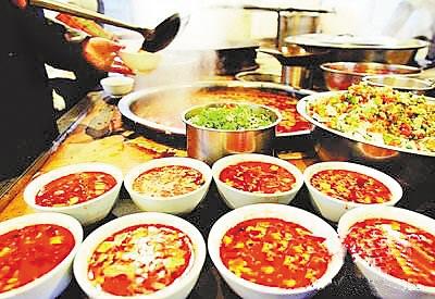 在晾面的时候,主妇开始炒菜,做汤头。做菜前,先要熟些新鲜的油泼辣子,在辣面中调入少许精盐与调和粉,将热好的胡麻油“嗞拉”一声倾入辣子面中,香辣之味顿时充满一室。然后开始烩菜做汤头。只见主妇有条不紊地将切好的菜丁逐一搁进油锅里,反复翻炒,适时放入大香、桂皮、草果、生姜、花椒等制成的混合调料与精盐,等香味炒出来了,便漩入提前烧好的开水,火关小,让其慢熟。