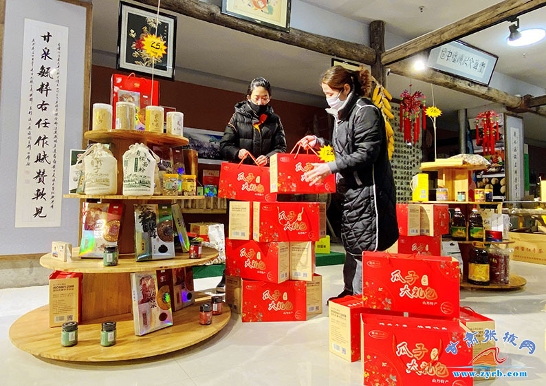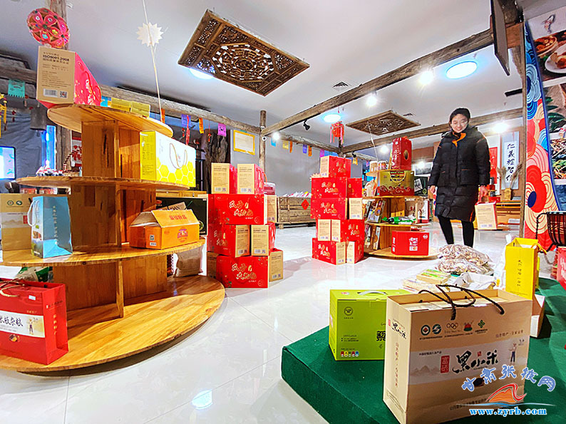 金张掖文旅农牧特产馆产品以本土文创、农特产品为基础,融入张掖悠久农耕文化,做好视窗,讲好故事,大力宣传展示张掖现代农业和文化旅游的发展成果。特产馆采用线上、线下、展示、销售多元经营模式组合,自主经营、合作经营、商品入驻三大模式自由选择。将本土各具特色的文旅、农牧产品利用线上、线下结合的销售模式销售到全国各地,打响张掖生态农业、特色农业、精品旅游品牌,推动特色农产品提质升级和促进特色农产品产销两旺,助力脱贫攻坚。(张掖日报融媒体记者 赵琳 摄)