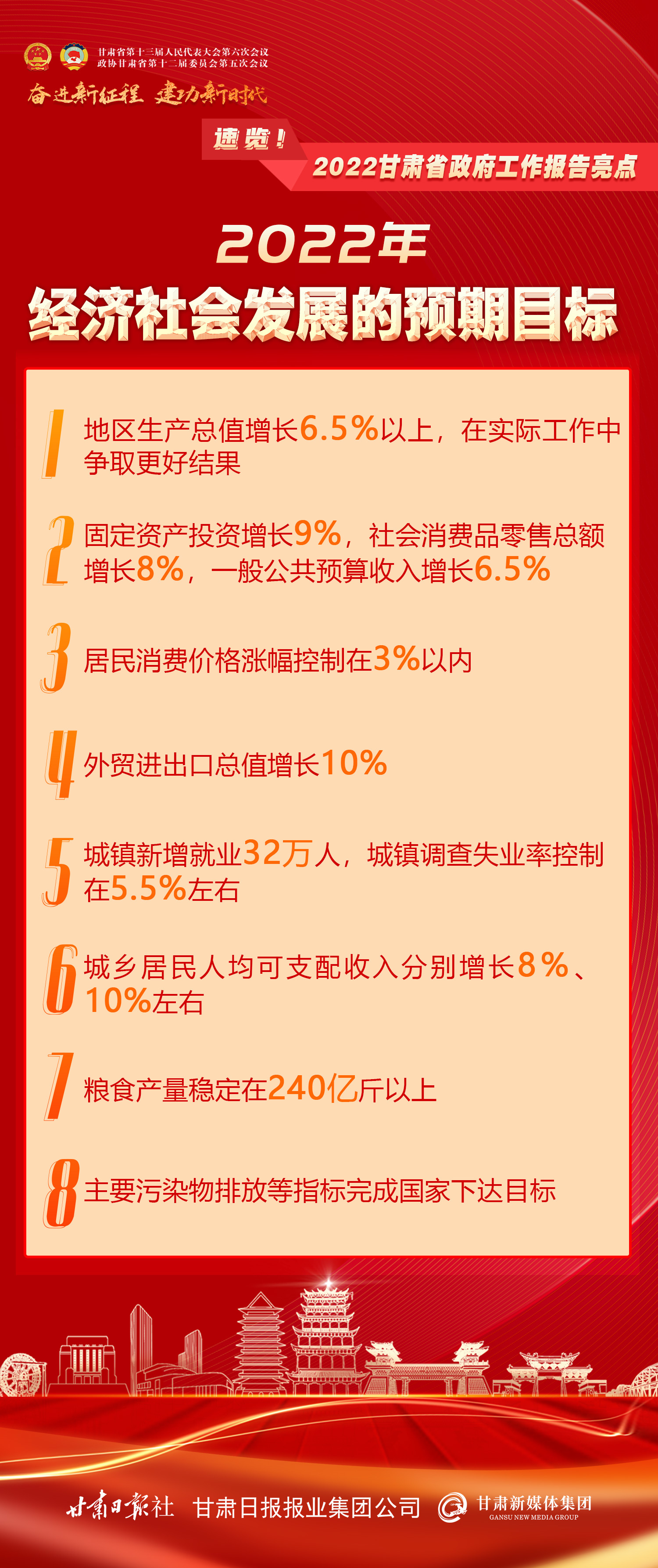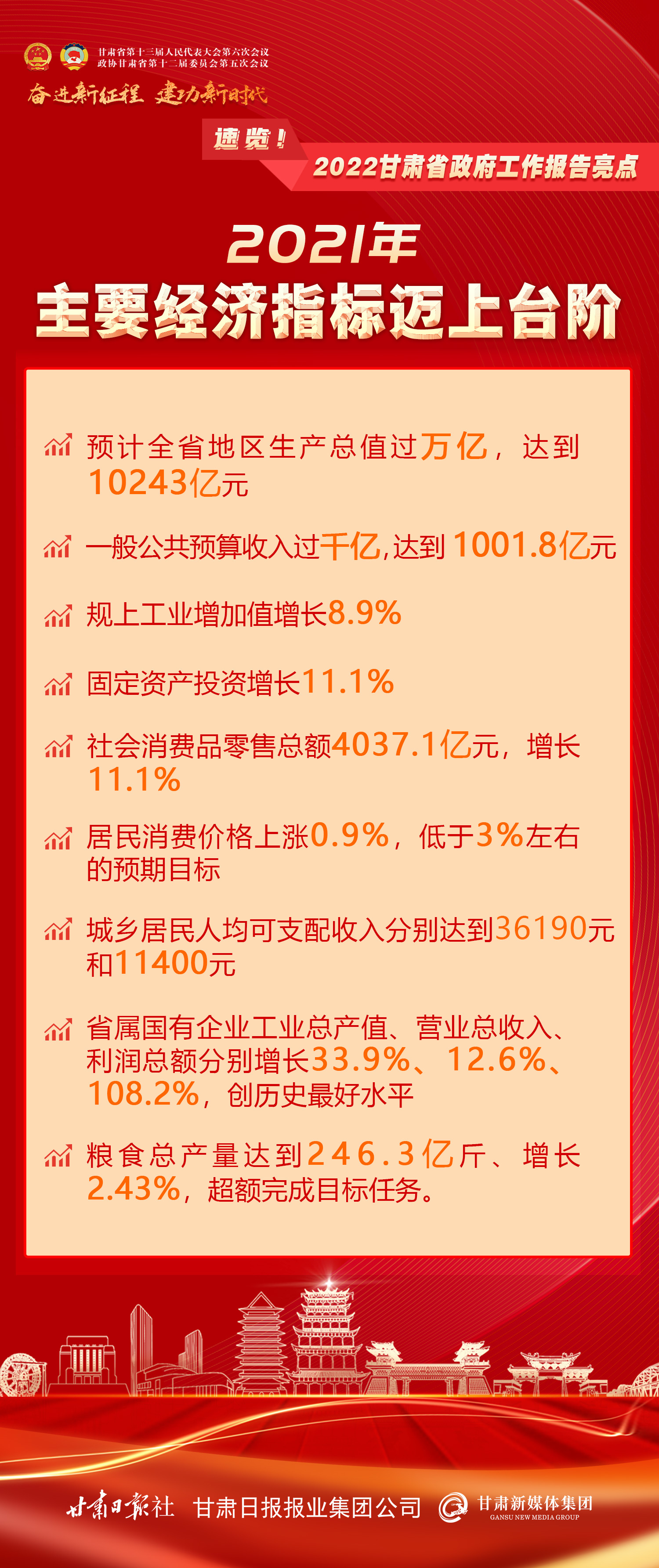 原标题:【微海报】速览!2022甘肃省政府工作报告亮点