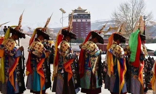 正月祈愿法会,藏语称为“毛兰姆”。自正月初一晚起,到正月十六日止。其间各寺院的全体僧人,每天要在大经堂诵经6次,其中第4次专为祈祷,祈祷佛法常在,有情安乐,天下太平等。正月初八日举行“放生”,给准备好的马、牛、羊洒上净水,在耳朵上系上彩带等后放走,凡是被放生的马、牛、羊,不允许任何人猎取。正月十三日举行“瞻佛”,将数十丈长的绣制佛像,展挂在晒佛台,僧众高诵沐浴经,群众肃然,场面盛大。十四日举行跳法舞会。十五日晚间举行酥油花供灯会,僧人制作的酥油花,陈列于大经堂周围,并供上酥油灯,使酥油花更显得鲜艳夺目。展出后互相评比竞赛,排列名次。十六日“转弥勒”,僧众抬着弥勒佛,在乐队伴奏下,绕寺一周,以示未来佛弥勒将要治世。