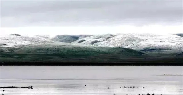 一片银白世界的尕海湖