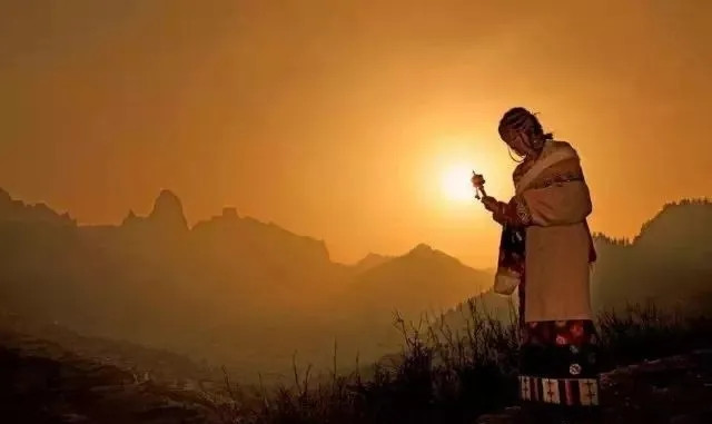 扎尕那夕阳下的藏族姑娘