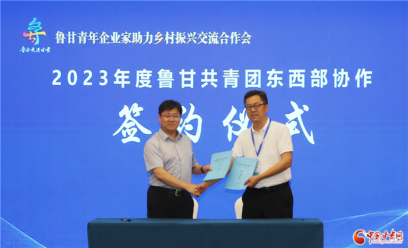 中国甘肃网7月3日讯 7月3日下午,第三届鲁企走进甘肃·2023陇南投资洽谈会三项平行活动之一的鲁甘青年企业家助力乡村振兴交流合作会,在康县“一带一路”美丽乡村论坛永久会址成功举办。会上,共青团山东省委与共青团甘肃省委签订了2023年度鲁甘共青团东西部协作协议书。