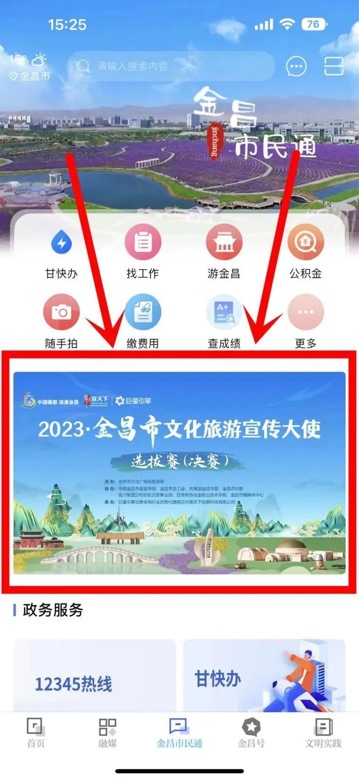 二、点击“金昌市民通”→“2023·金昌市文化旅游宣传大使选拔赛(决赛)”投票界面