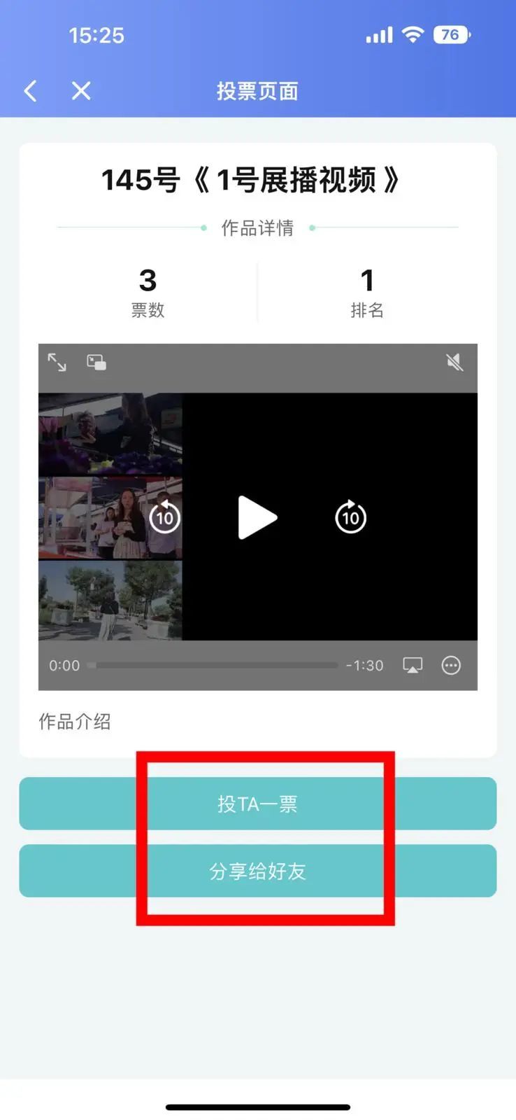 三、点击每个选手作品的图片进入投票页面并投TA一票