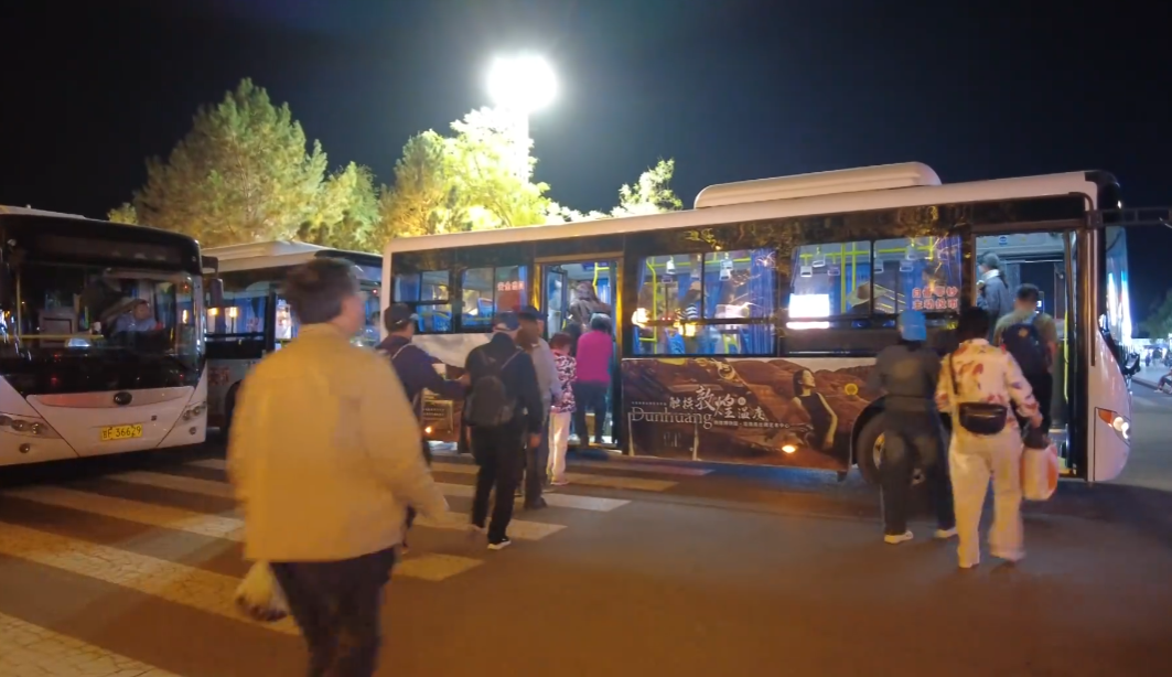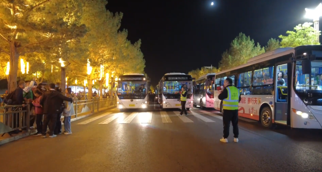面对演出结束后大流量的返城游客,敦煌市暖心推出城市公交免费转运服务,数十辆免费直达市区的公交车,加密运营频次,保障游客返回市区的乘坐需求。此外,景区今年在1号停车场东侧新增可容纳7000辆车位的2号停车场,景区在门口、免费公交停靠站等人员集中区域增派工作人员,加强现场引导与秩序维护。