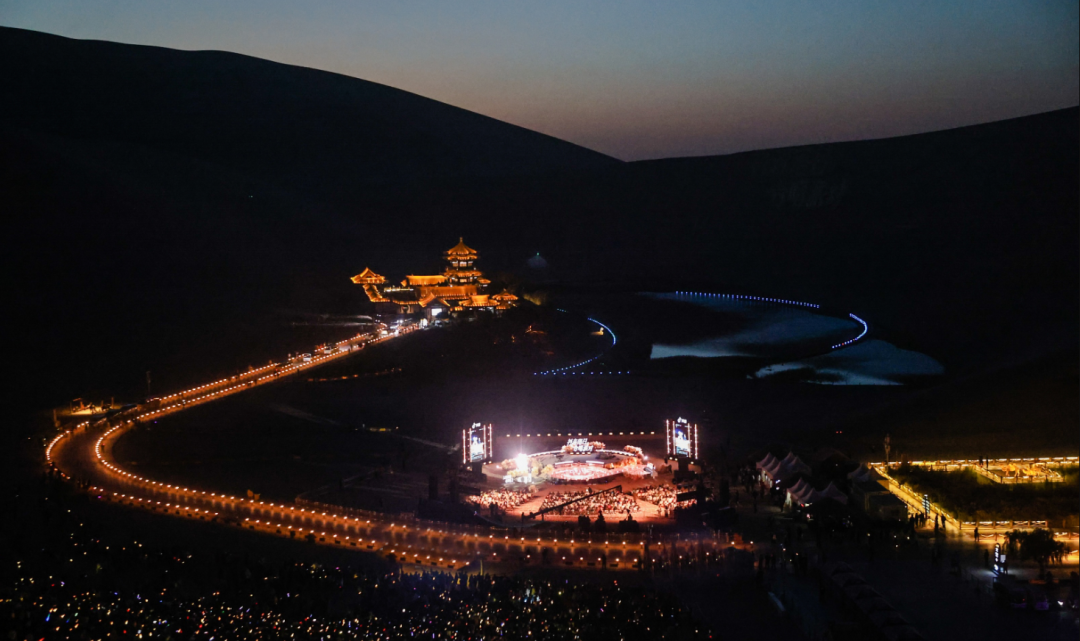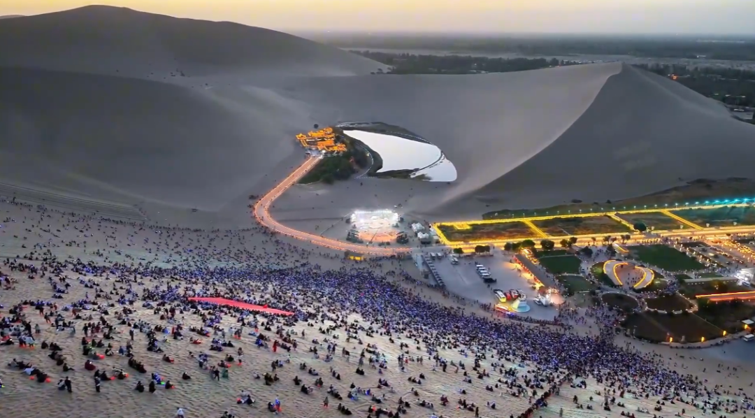 鸣沙山月牙泉景区“星空演唱活动”,2023年最初由游客自发组织。他们携带小型音响和拍摄设备,从十几人逐渐聚集至几十人、上百人,在鸣沙山上即兴歌唱。为积极迎合游客需求,2024年,敦煌市委、市政府投入1000多万元对演唱活动进行改造提升,优化音响系统,精心设计灯光秀,增加投影设备,让游客能够尽情参与合唱,宛如一场免费的露天卡拉OK。