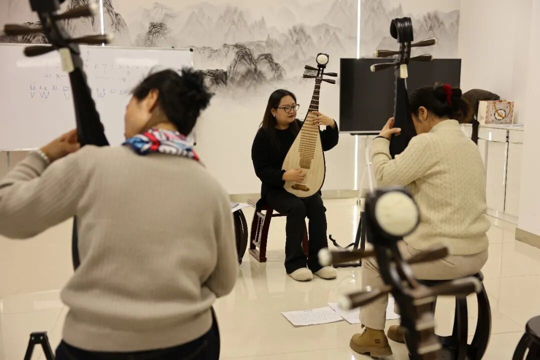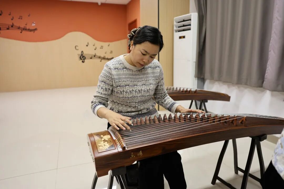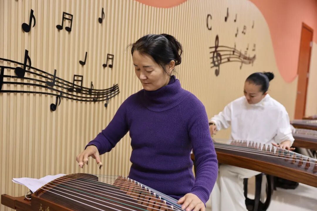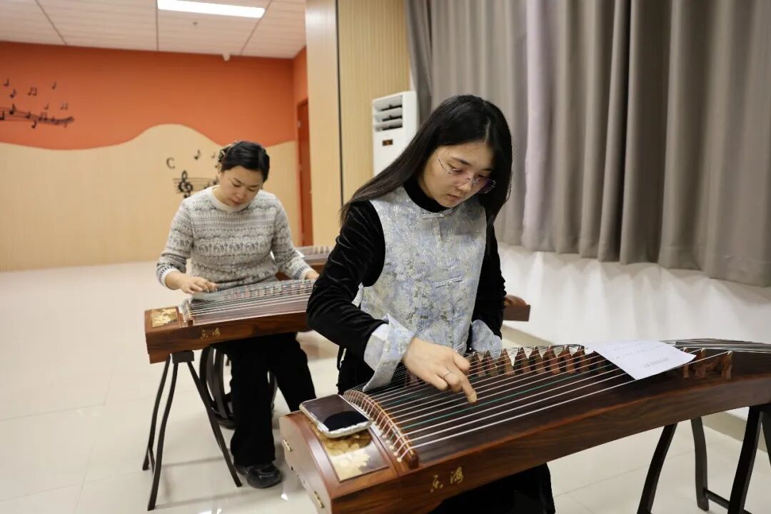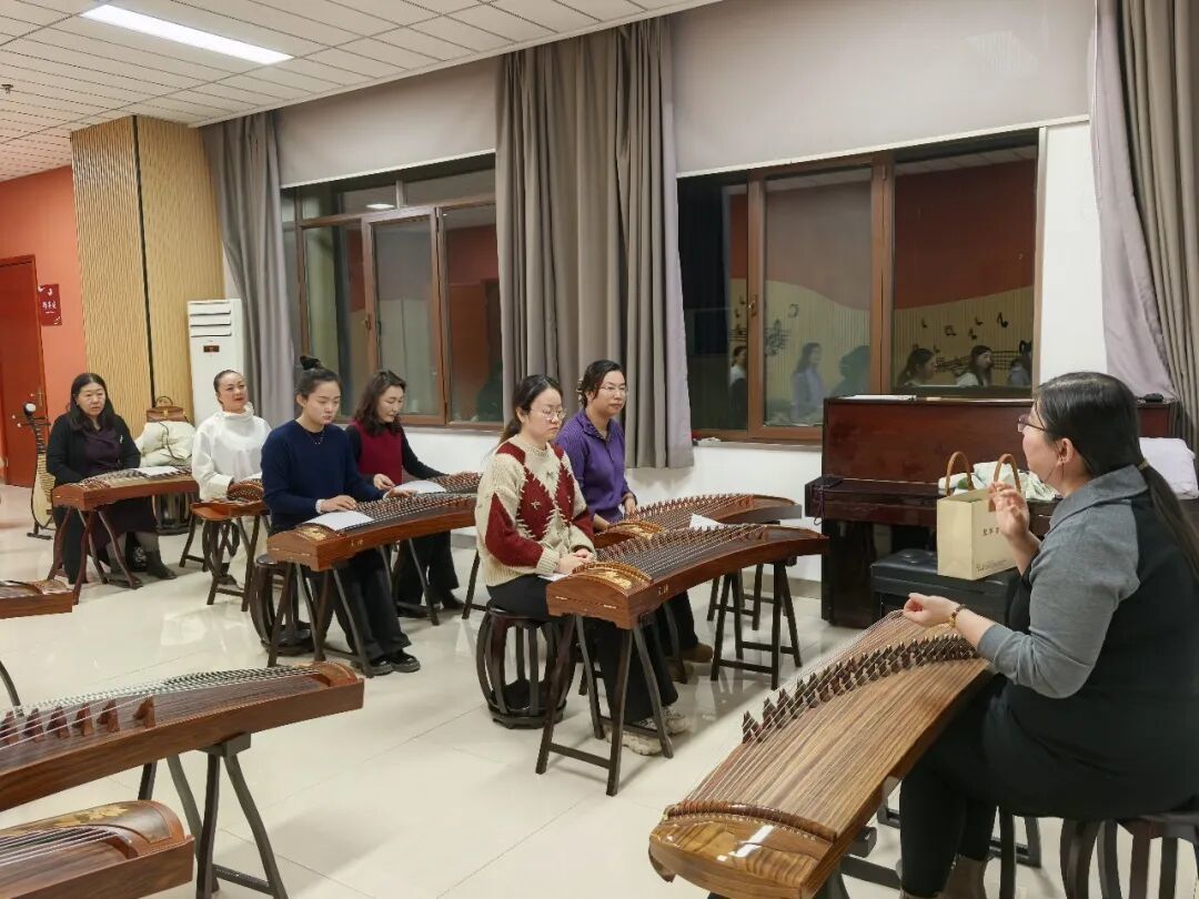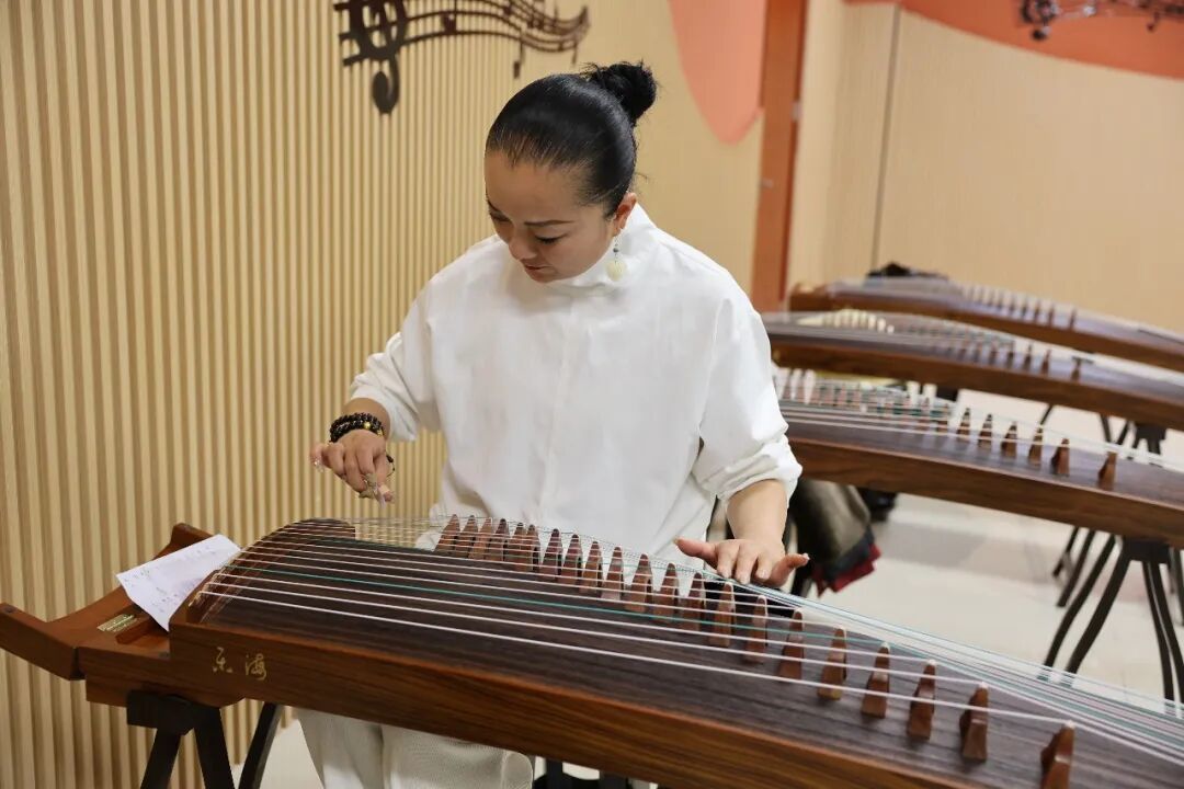 古筝班作为学堂的“热门”课程,成效尤其突出。随着学堂进程过半,学员们经过三周的系统学习,已经牢固掌握了基本指法与演奏技能,能够流畅表演《声声慢》等经典乐曲。指导教师还特别加入合奏训练部分,使学员的学习过程更为丰富。