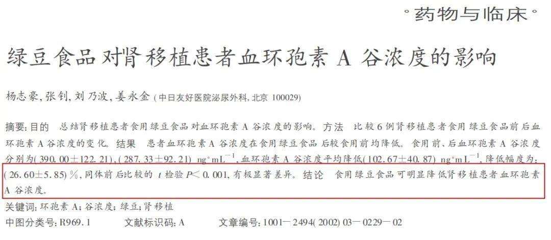 因此,对于正在服用环孢素和他克莫司的所有肾友们,最好避免食用绿豆食品(绿豆粥、绿豆汤等)。