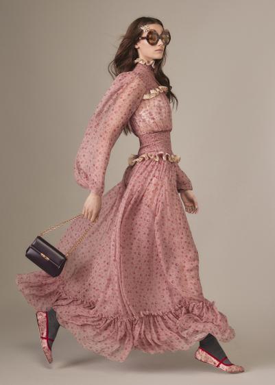 系列贯穿蕾丝元素,泡泡袖、荷叶边与密褶设计延续流动之美,内衣风格连衣裙通过缩褶刺绣打造空气感结构,曳地长裤与男友风牛仔裤形成风格对比,环保皮草外套、阔身派克大衣可外搭垂褶连衣裙。维多利亚衬衫与吊带裙点缀焕新花卉图案,手袋系列涵盖Vittoria摔纹皮革款、My Sicilyplongé皮革款、Capri拉菲草款,鞋履包括针织袜配露跟鞋、印花缎面芭蕾舞鞋及饰标运动鞋。品牌延续2022年起停用动物皮草的承诺。