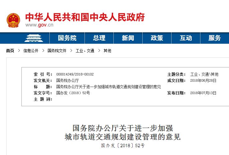 7月13日备受瞩目的《国务院办公厅关于进一步加强城市轨道交通规划建设管理的意见(国办发[2018]52号)》(以下简称52号文)正式印发,明确提高了申报地铁城市的“门槛”。正式宣告兰州除已开工的1、2号线一期工程外,其他项目暂时停建。