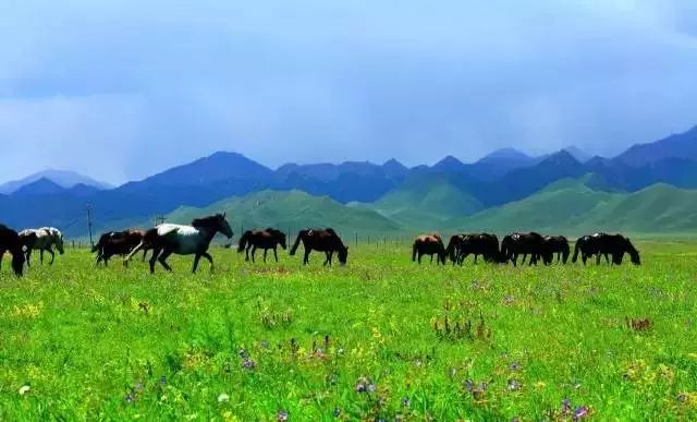 每年6到8月,是自驾去山丹军马场的最佳时节,这时天高云清、绿草如茵、鲜花烂漫,整个马场就像分布在一块绿色的地毯之上。