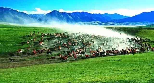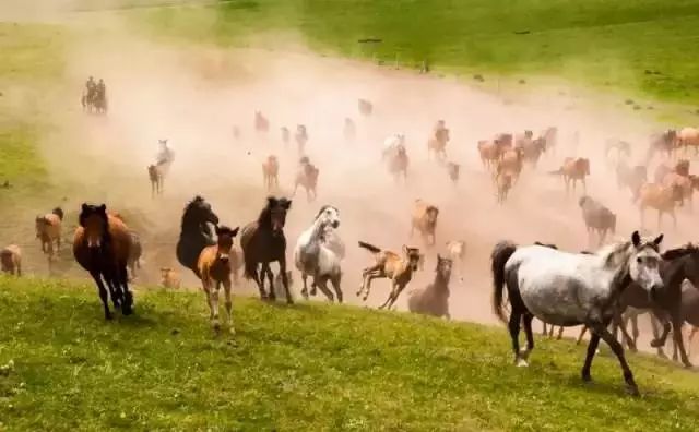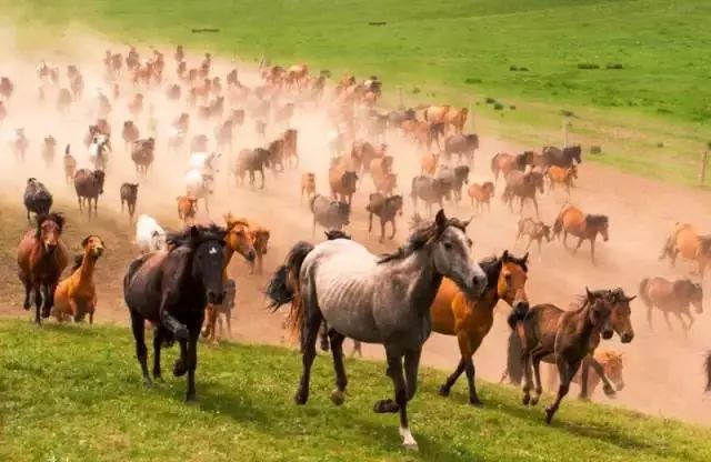如是骏马,自当嘶吼山河。蓝天白云下,一匹匹雄健的骏马如疾风,似骤雨,像海浪般,从一望无际的草场上呼啸而过,长鬃飞扬,响声如雷。