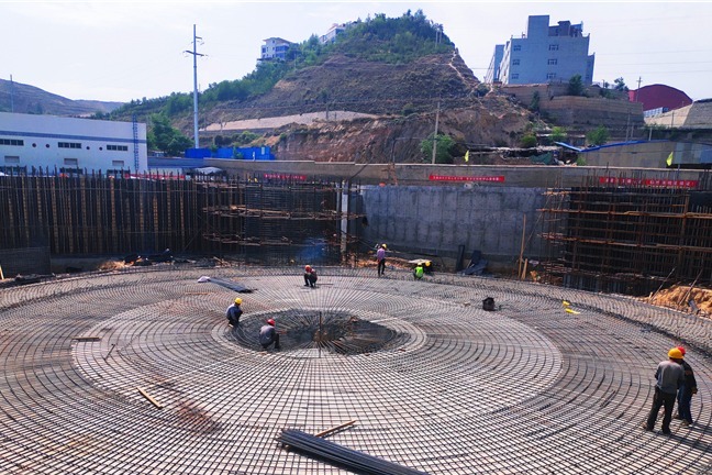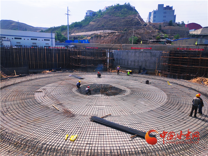 6月10日上午,记者在雁儿湾污水处理厂提标改扩建工地看到,工人们正在二级沉淀池底部进行钢筋基础作业。