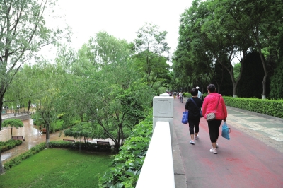 市民在兰州市黄河边行走 新华社照片