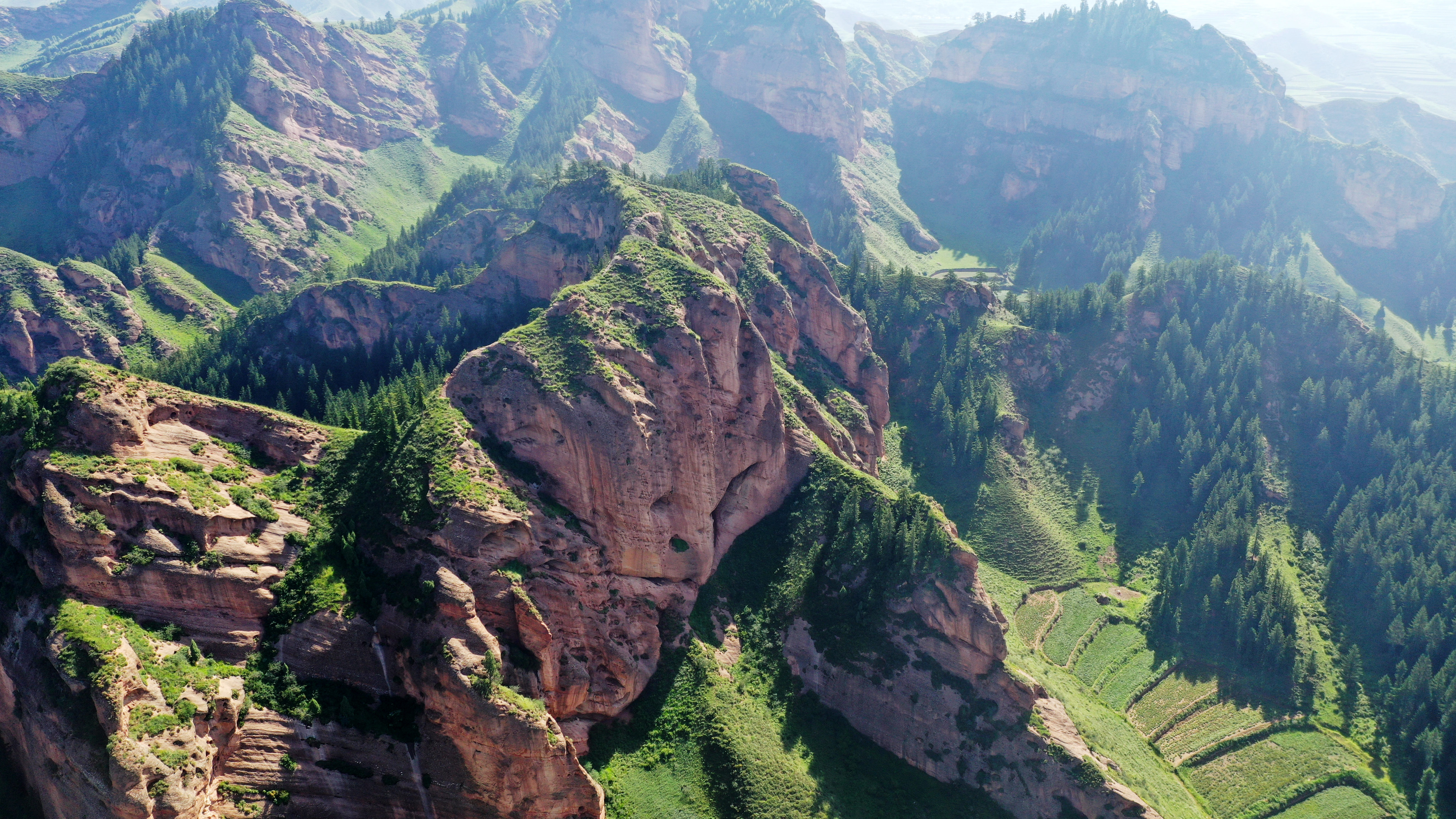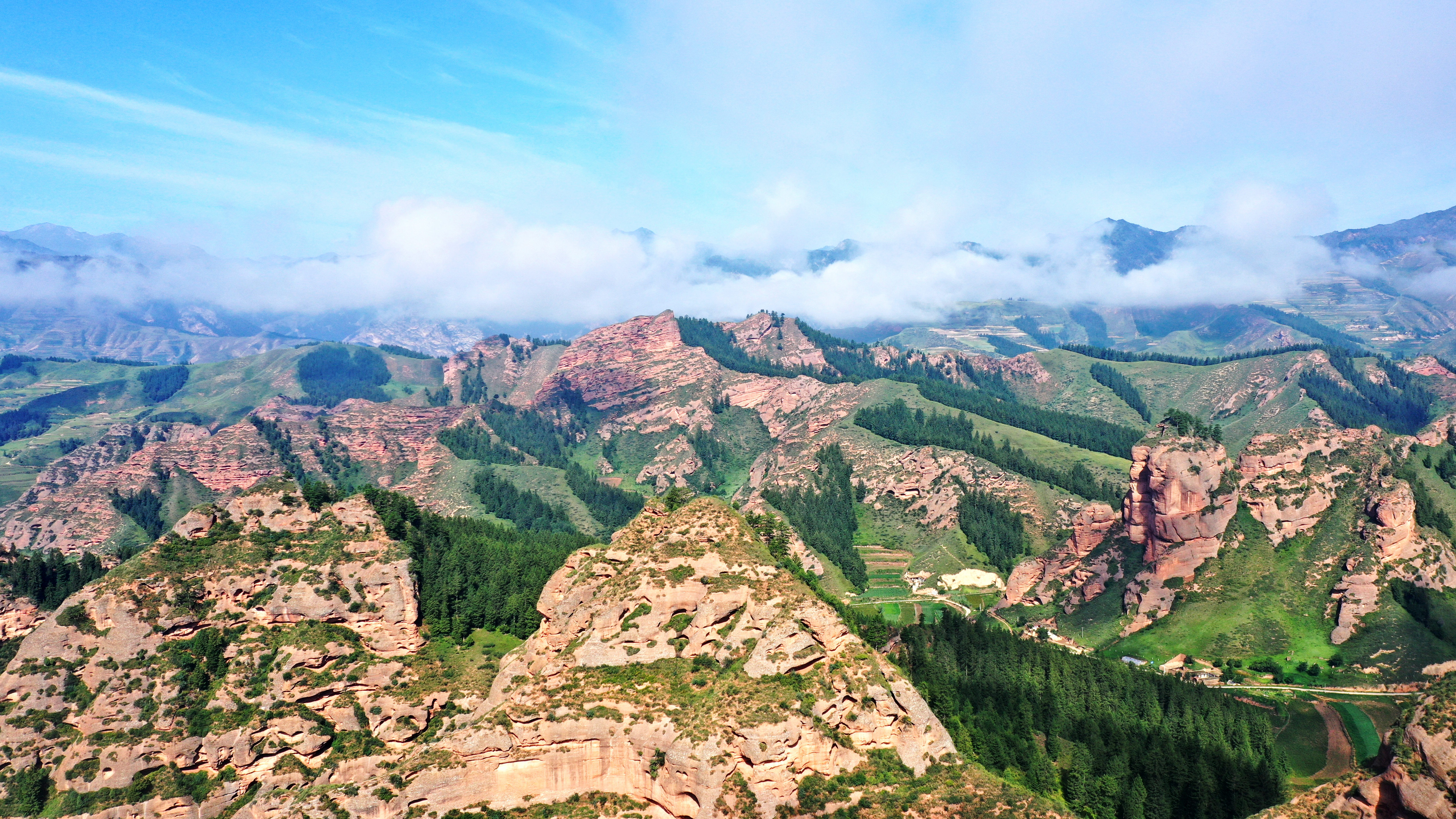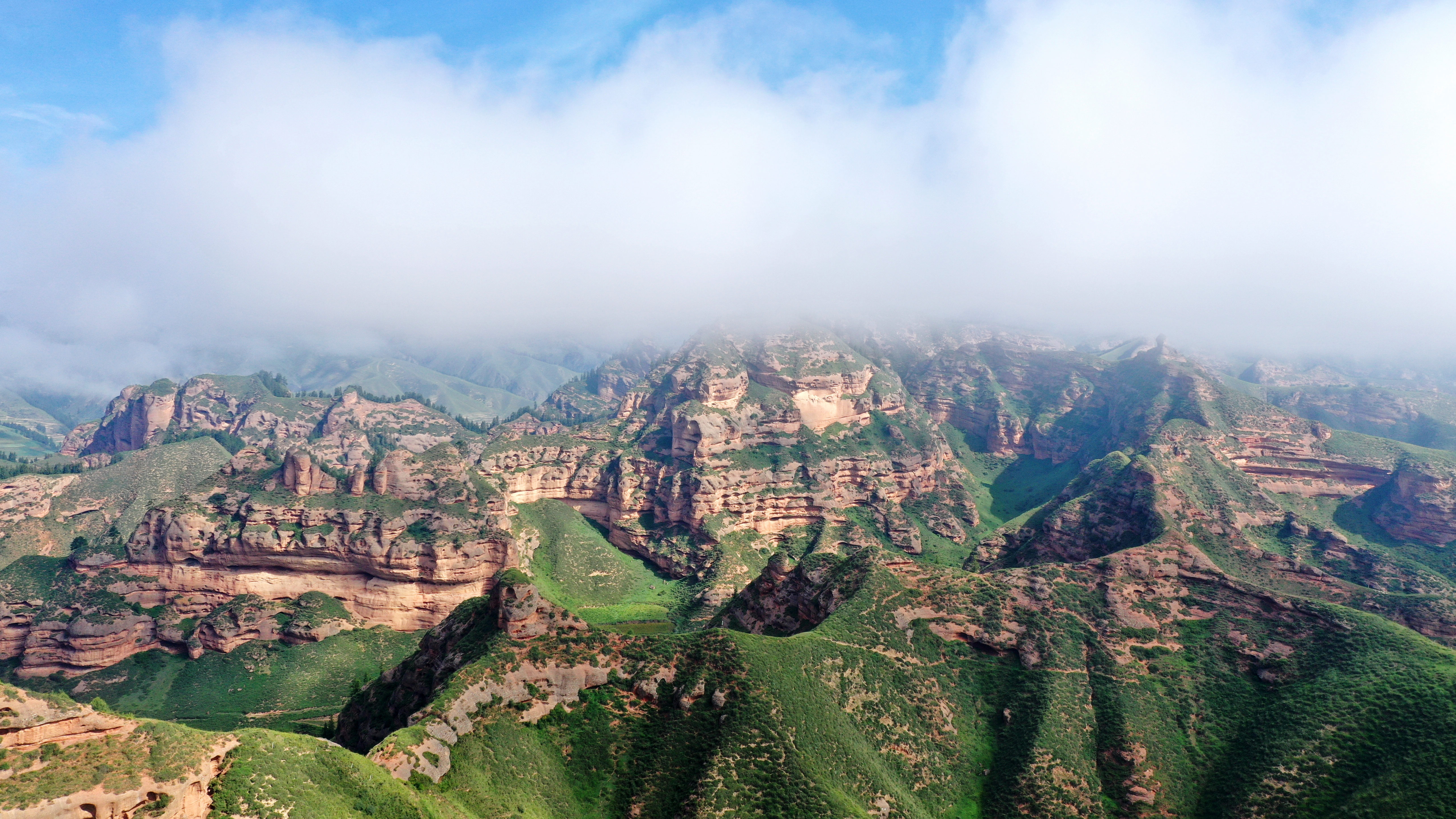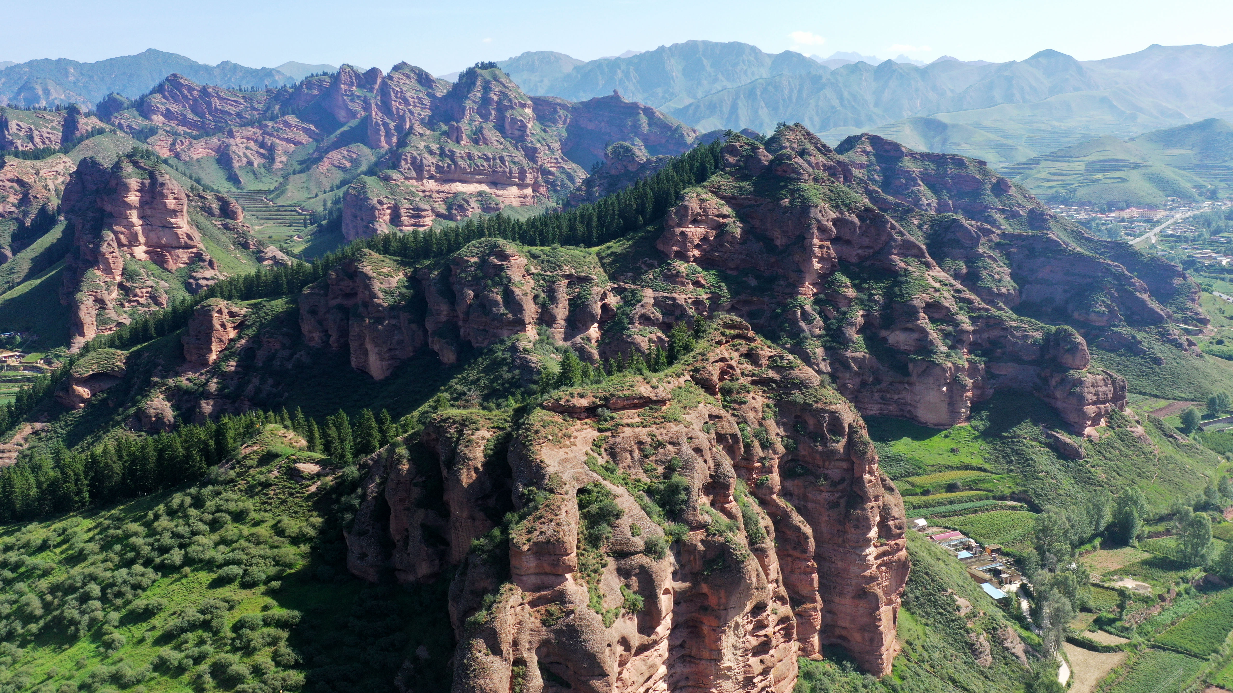 ↑这是8月2日拍摄的天祝藏族自治县天堂镇境内丹霞地貌(无人机照片)