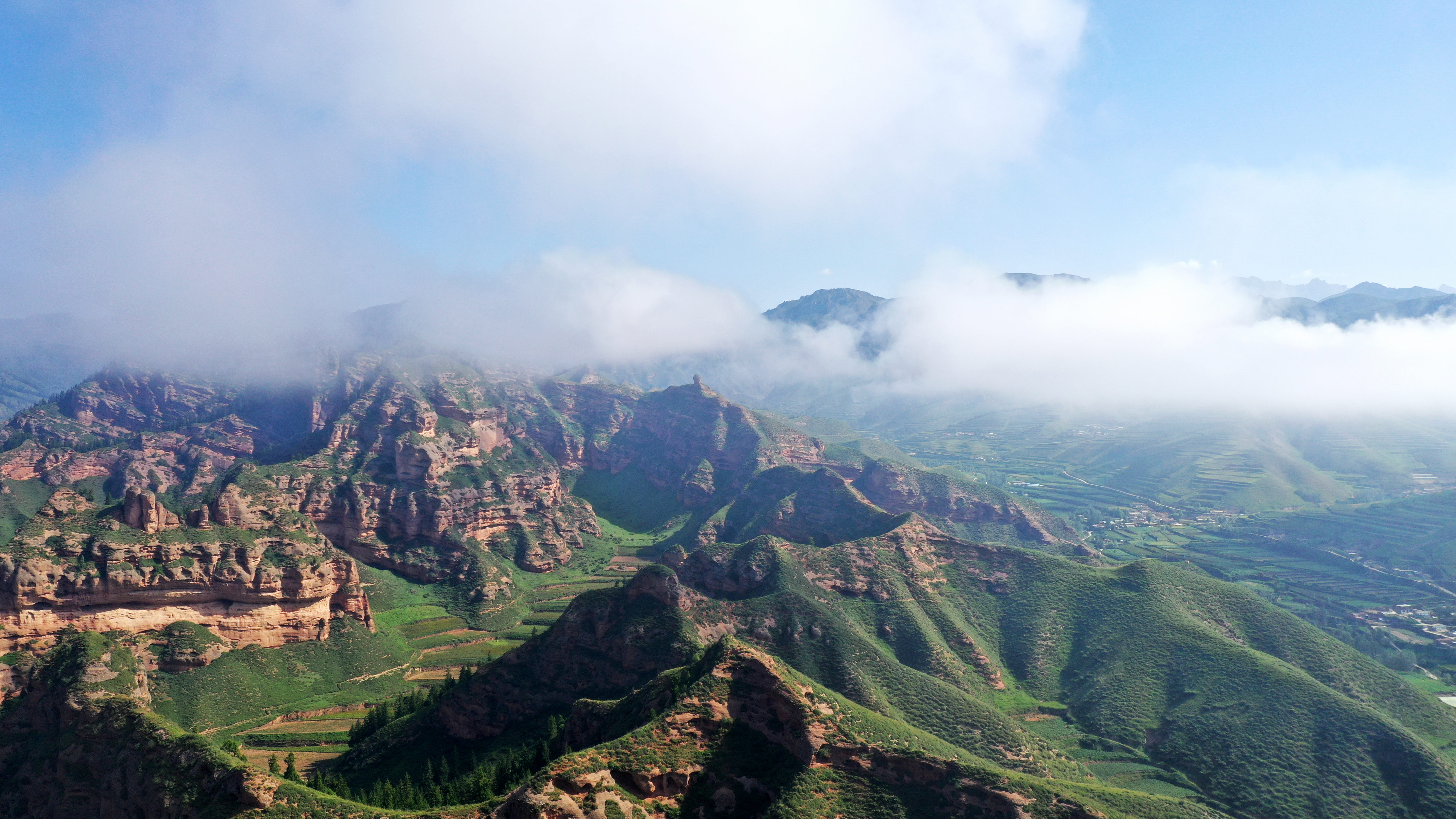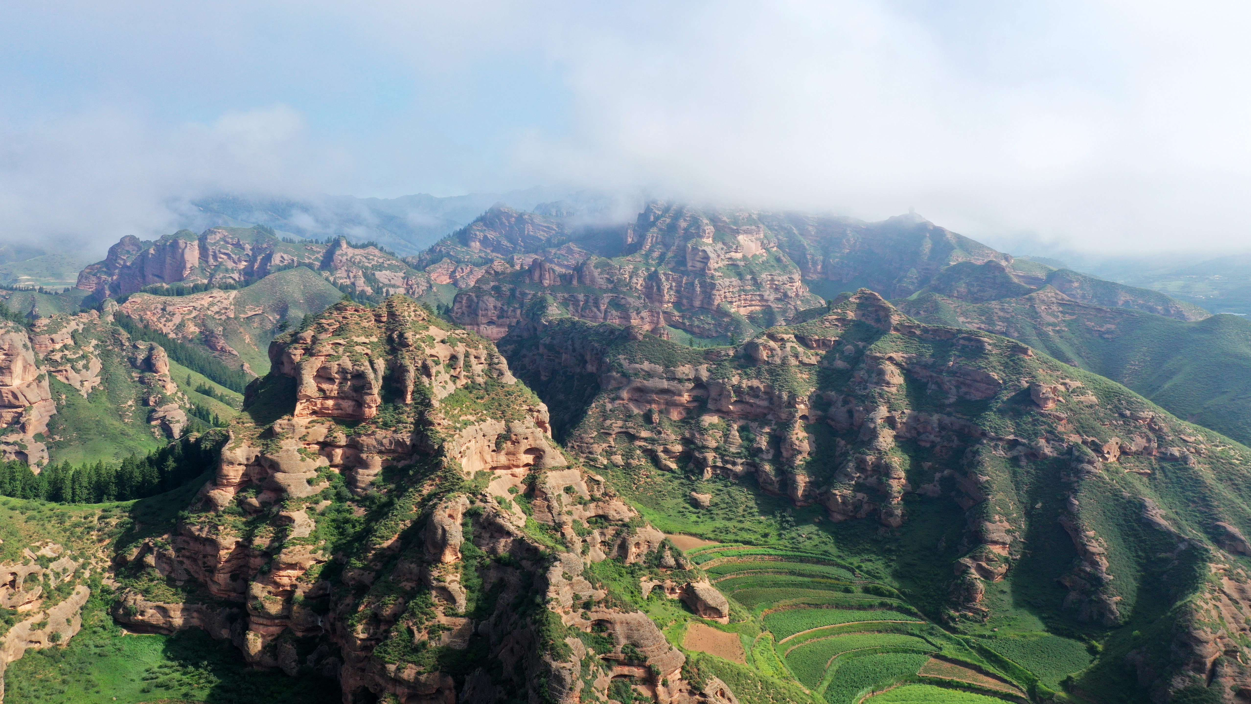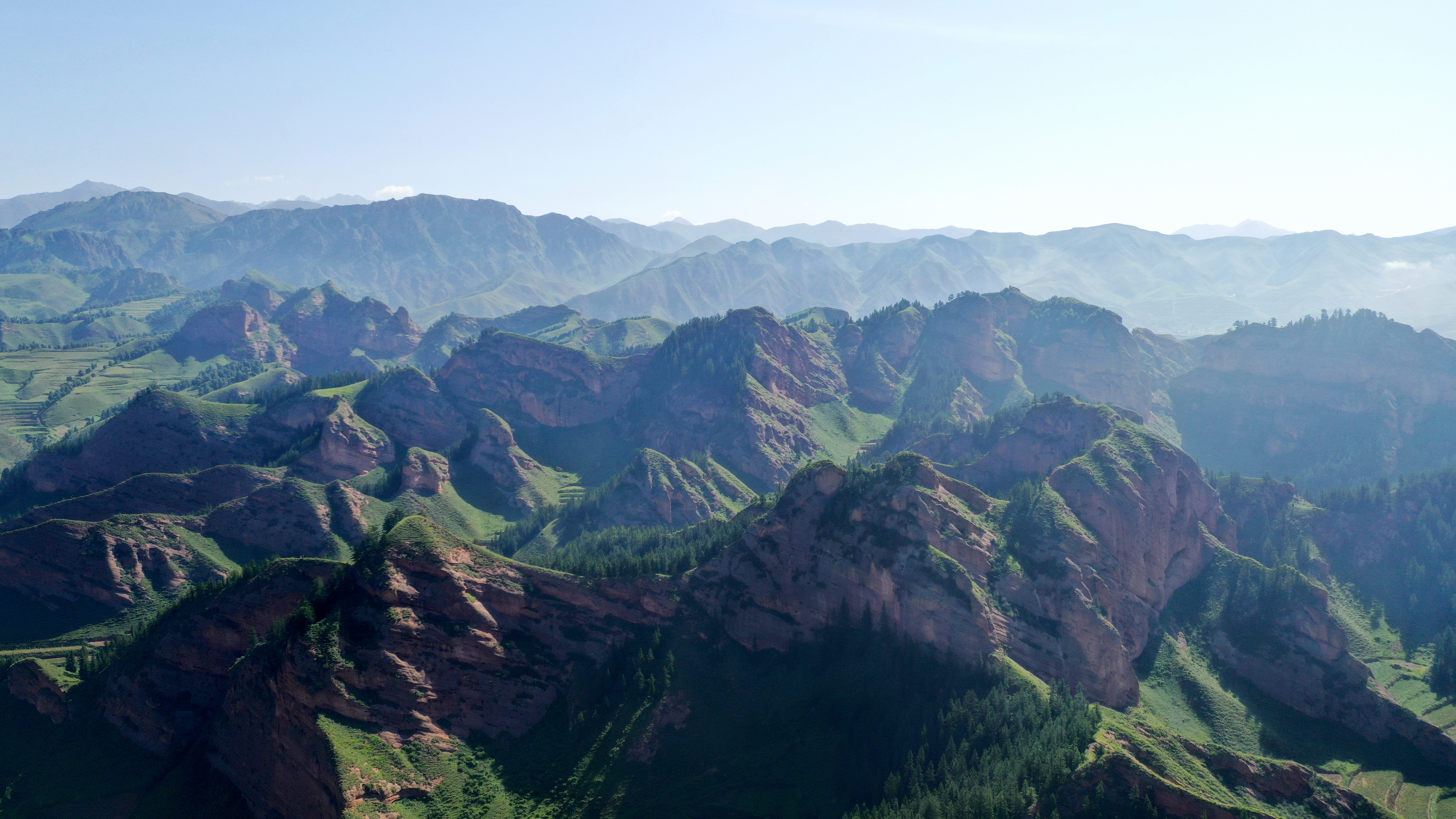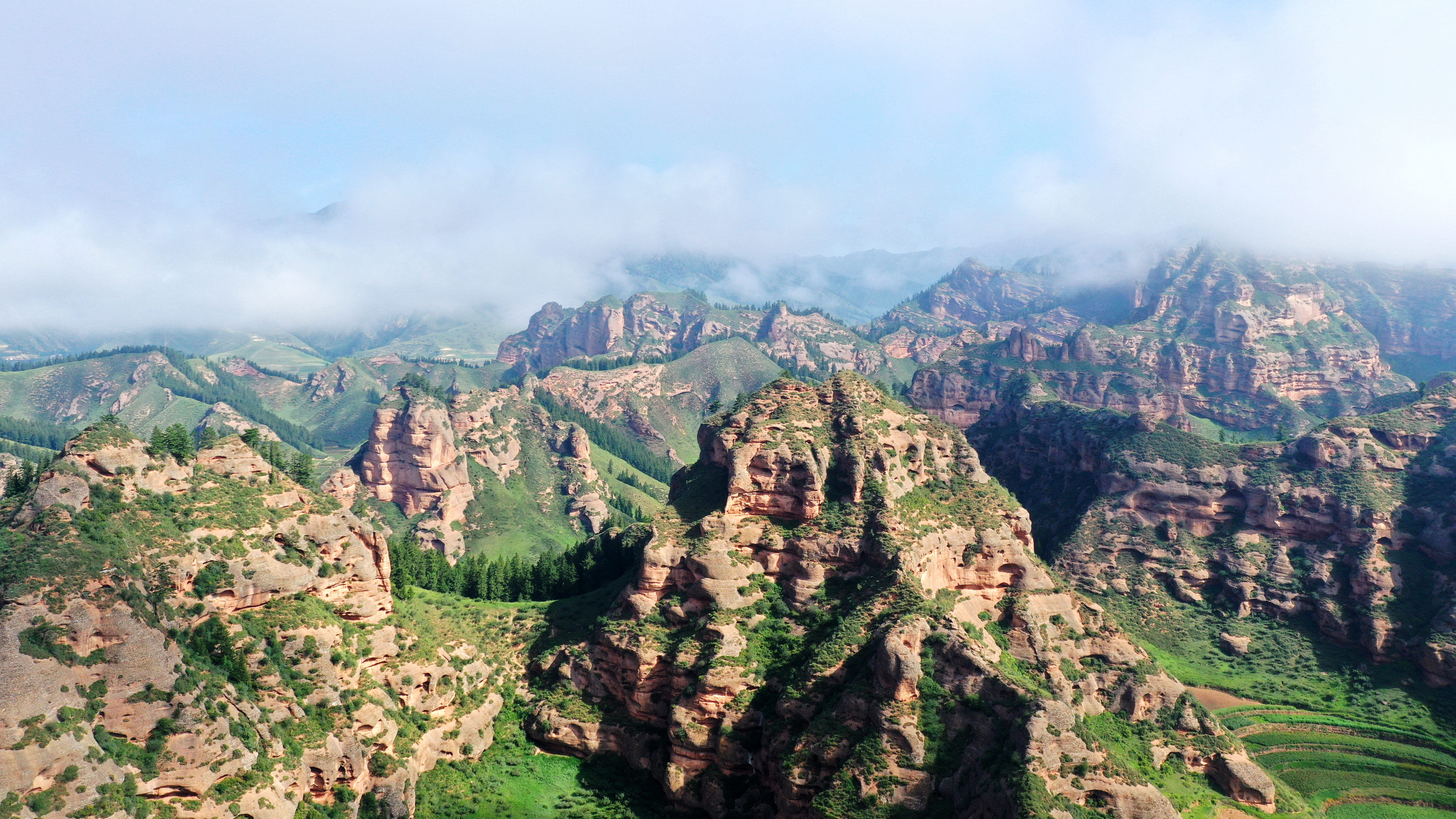 ↑这是8月2日拍摄的天祝藏族自治县天堂镇境内丹霞地貌(无人机照片)