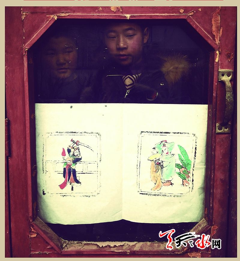 才进屋,老人的女儿县美丽便介绍起来,“除了画窗花,我爸平时还画年画,这张百子图和几幅四条屏,都是这房子刚盖起来那会儿画的。”看着墙上贴着的几幅色泽鲜艳的年画,一股浓郁的乡土气息顿时扑面而来。