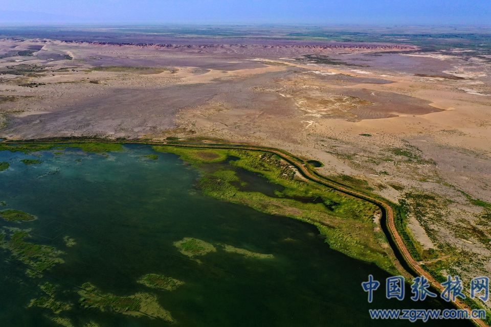 8月4日,张掖黑河湿地高台段的天鹅湖绿意盎然,航拍下如一张巨幅拼图,镶嵌西北戈壁之上,绘就了一幅美丽生态画卷。目前,高台县黑河湿地国家级自然保护区总面积2.95万公顷,占张掖市国家级自然保护区总面积的71.57%,保护区内水域、沼泽、滩涂星罗棋布,湿地类型多样,资源丰富。郑耀德