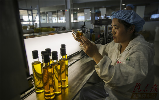 公司的紫苏油生产引进了韩国先进设备,采用低温物理压榨(冷榨)工艺,紫苏油α—亚麻酸含量高达60%以上。在金牛公司的生产车间,记者看到紫苏油从原料筛选、压榨、灌装、装盒等一系列加工流程,生产出具有黄土高原上的“深海鱼油”之称的紫苏油。