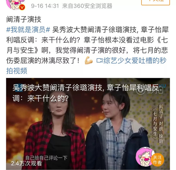 看客们明显更热衷于围观她对“阚清子演技”的这短短十几秒的负向点评
