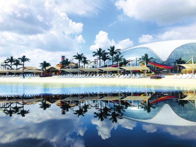 “按照国家4A级旅游景区要求,我们深入挖掘景区特色产品,将取自地下2549米处的古海富硒温泉引入室内温泉馆泡池,泉水为高浓度氯化钠泉,总固体含量达42882毫克,属中国三大盐泉之首。温泉水质达到《温泉旅游泉质等级划分》的最高级别——‘优质珍稀温泉’级,泉水中硒含量更远超国内著名硒温泉几十倍,满足了游客多样化、个性化的旅游需求”企业负责人告诉记者,同时自项目开建以来,企业已为600余名新区剩余劳动力及新区居民解决了就业问题。