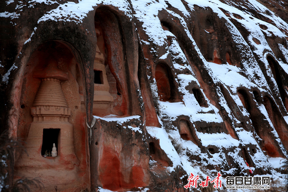 寒冬时节,几场落雪后,地处祁连山深处的千年佛教圣地马蹄寺,平添了几分幽静、神秘。马蹄寺位于张掖市肃南裕固族自治县马蹄乡的临松峡谷中,距离张掖市区60公里,是集石窟艺术、宗教文化、裕固风情、祁连风光为一体的国家4A级景区,属全国重点文物保护单位。马蹄寺石窟的独特之处在于千佛洞有500多个摩崖佛塔窟龛,其数量之多、规模之大,在河西走廊其他石窟中绝无仅有;金塔寺内大型高肉雕彩塑飞天,形象生动、古朴稚雅,是浮雕与佛教绘画艺术的珍品,堪称国宝;普光寺的“三十三天”洞窟,上下五层二十一窟,宝塔形排列,内有佛殿,外有回廊,共开内外窟龛达49孔之多,造型奇特、气势恢宏。如今马蹄寺景区已经成为国内外游客欣赏石窟艺术、体验裕固风情、游览祁连风光的最佳去处。