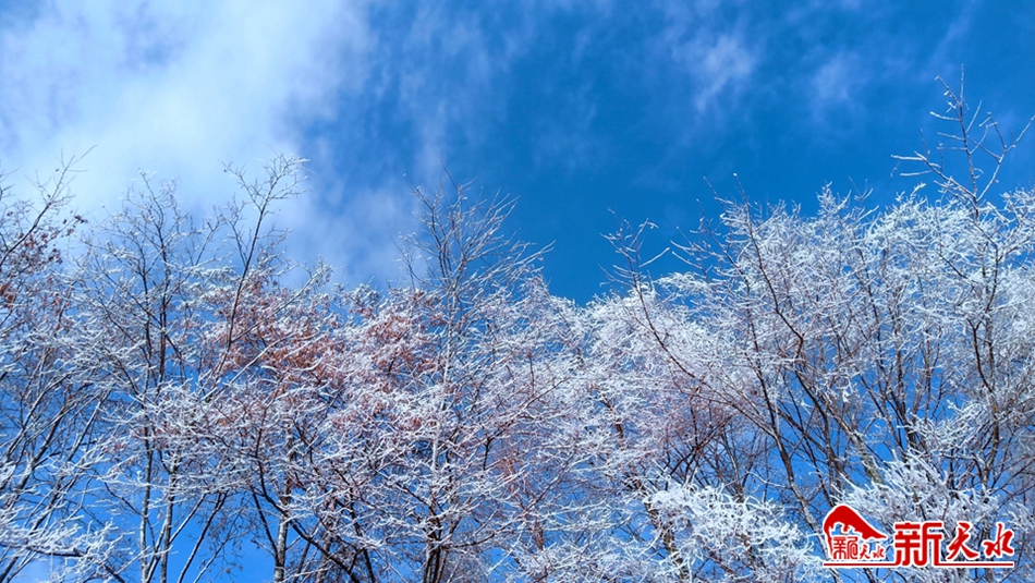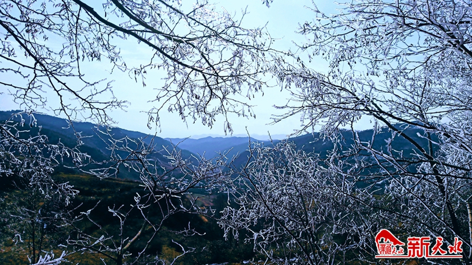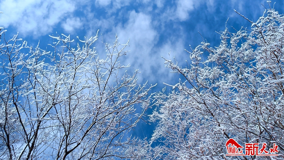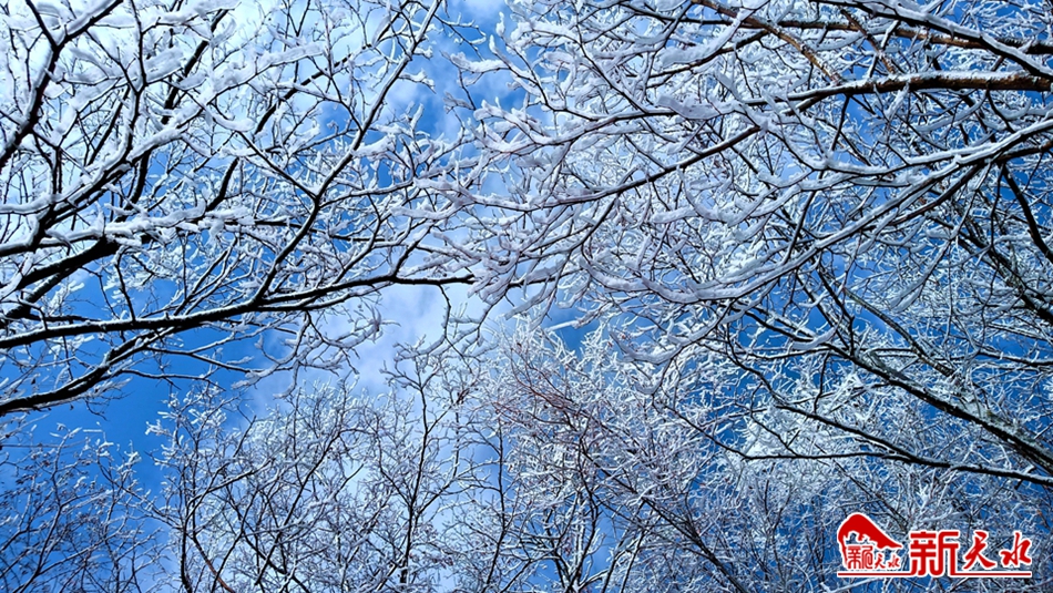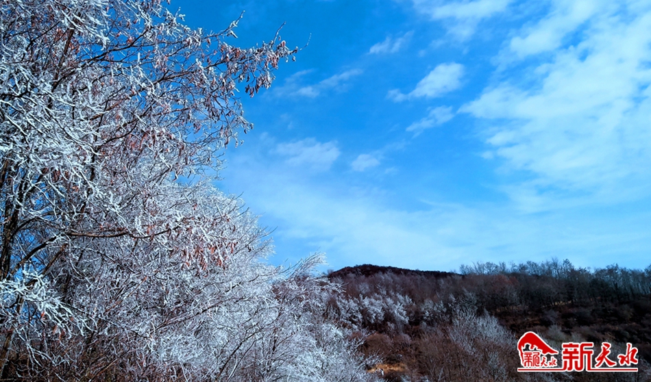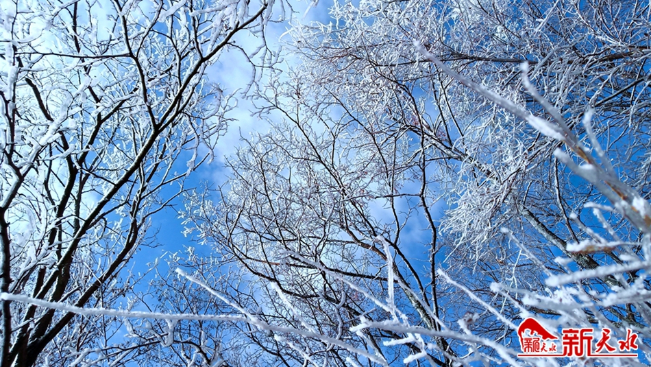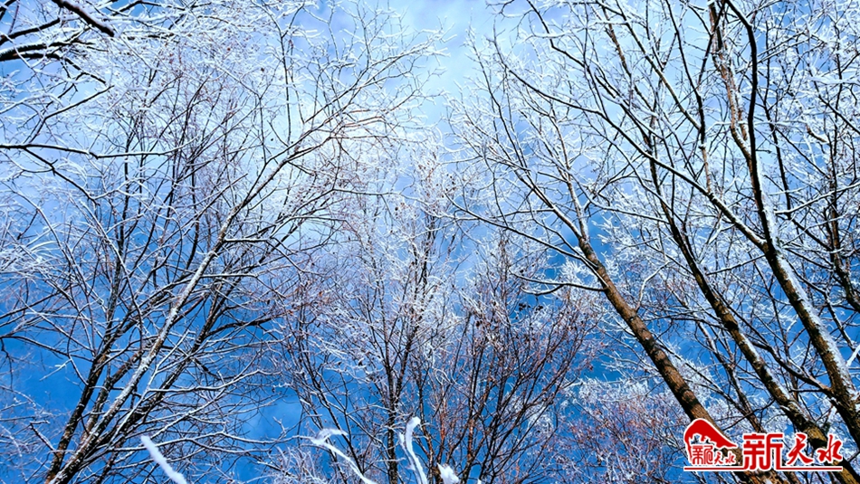 深冬季节,当气温骤然下降时,天水市一些高寒阴湿的僻远山区,特别是林木茂盛的林区,都会出现一种玉树琼花的瑰丽景象——冰挂,远远望去宛如盛开在山巅的“雪莲花”。12月17日,岁末的冬日,在清水县秦亭镇盘龙村逶迤连绵的群山中,满山白雾缭绕,水墨氤氲中,雾气和水汽遇冷凝结在树枝上的树挂轻盈纯白,清秀雅致,晶莹剔透,构成一幅美轮美奂的壮观图景。湛蓝的碧空,洁白的云朵,呼啸的寒风,面对茫茫苍穹和静谧的大地,让人有种回归自然的惬意。