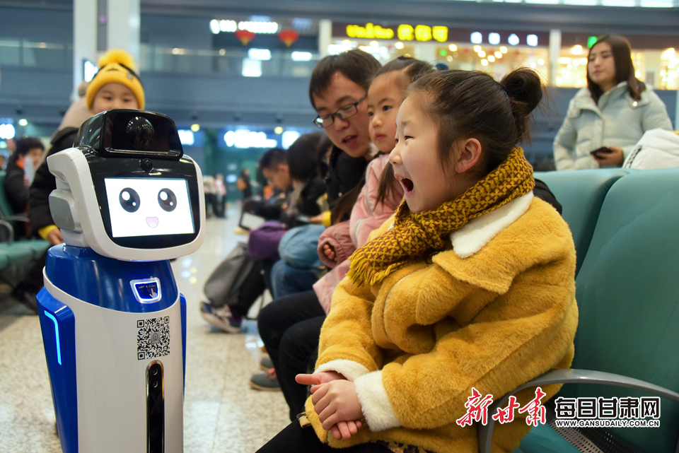 每日甘肃网兰州讯(新甘肃·每日甘肃网记者 韦德占)1月11日上午,兰州西站候车厅“飞天馨路”服务台处,智能服务“小龙人”机器人上岗,“小龙人”的服务器数据库中存储了大量铁路信息和相关业务数据,不仅涵盖了站内导航、车站基础信息、车站列车时刻、列车停靠站、列车到发信息、线路车次、站内服务查询外,还包含了其它与出行相关的地理信息,比如天气、航班等信息。海量的信息、快捷的服务让“小龙人”一亮相就备受欢迎。