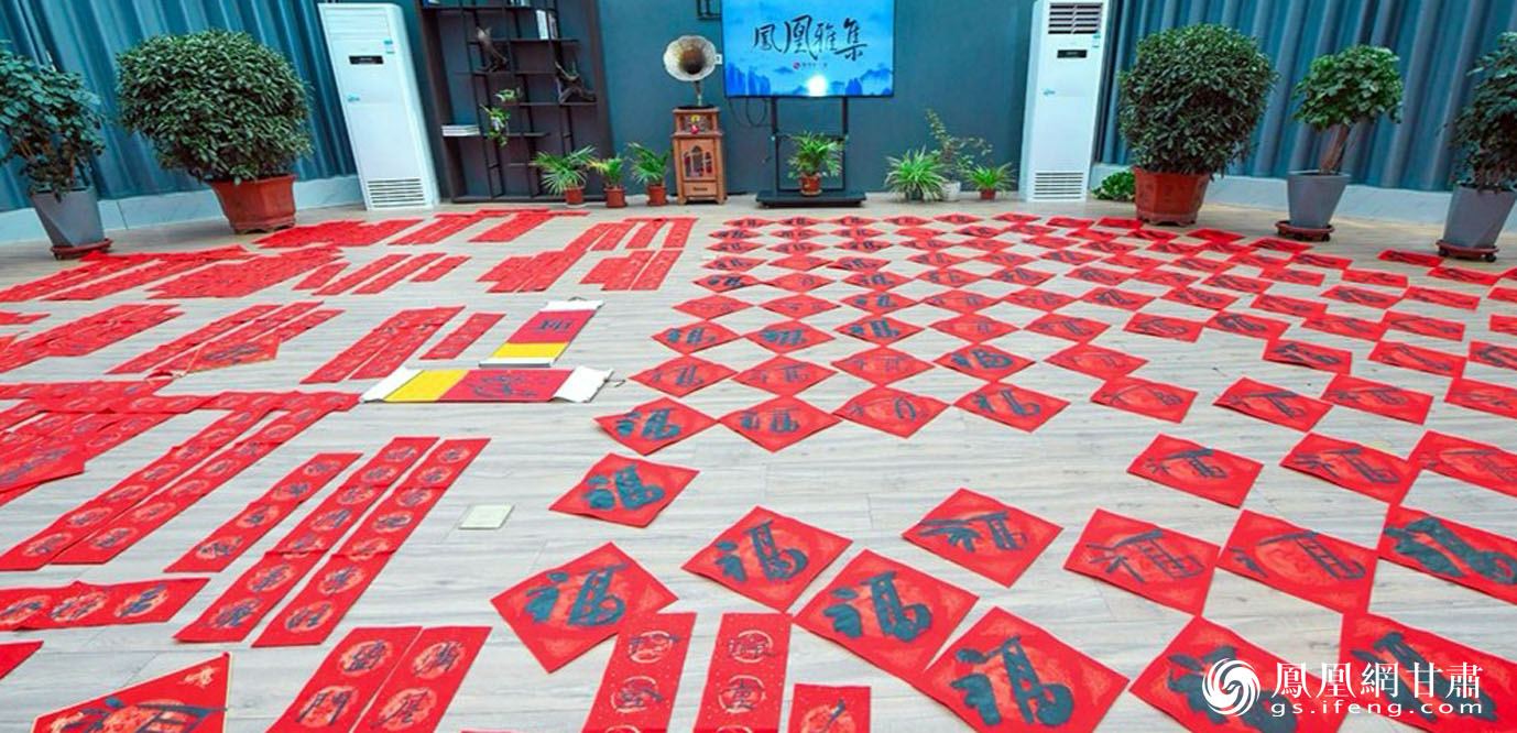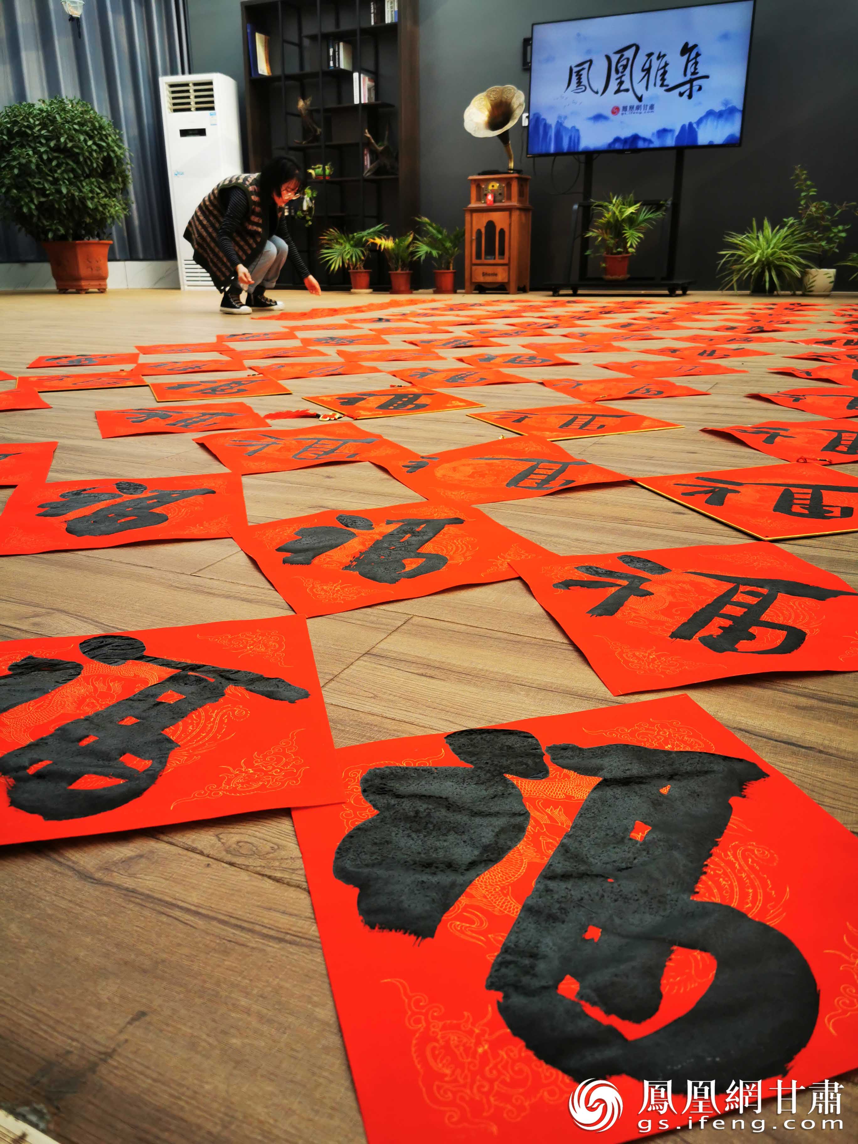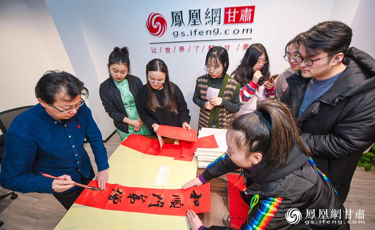 泥砚轻浅,坐尝春芽。凤鸣之地,铺就素宣。1月17日恰逢农历小年,兰州市书法家协会主席汪志刚、副主席郎照玉来到凤凰网甘肃频道,挥毫泼墨间,真、草、隶、篆、行等各种书体尽显神韵,百余幅福字、数十幅对联,“私人订制”为凤凰网甘肃频道送上新春佳节的美好祝福。兰州大学文学院副院长郭茂全博士、兰州城市学院俄罗斯籍教师奥莉娅也受邀参加当日活动,共襄雅集盛会。