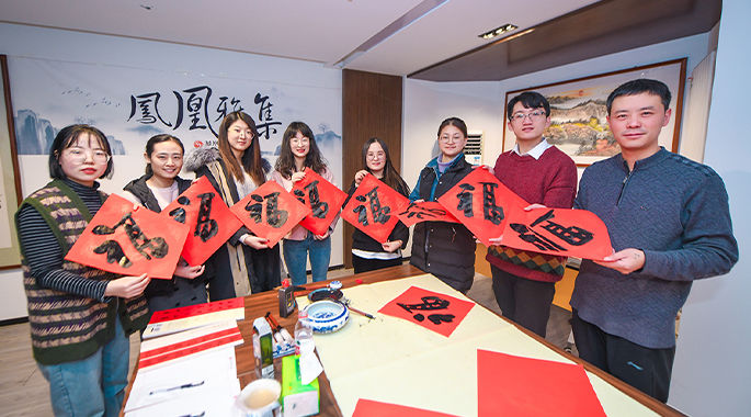 整个书法题写现场温情洋溢,一幅幅刚劲有力的福字和寓意吉祥美好的春联,自成景致,令观者赞不绝口。