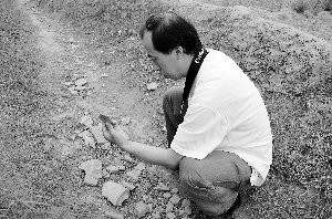 王纲在查看捡到的碎瓦
