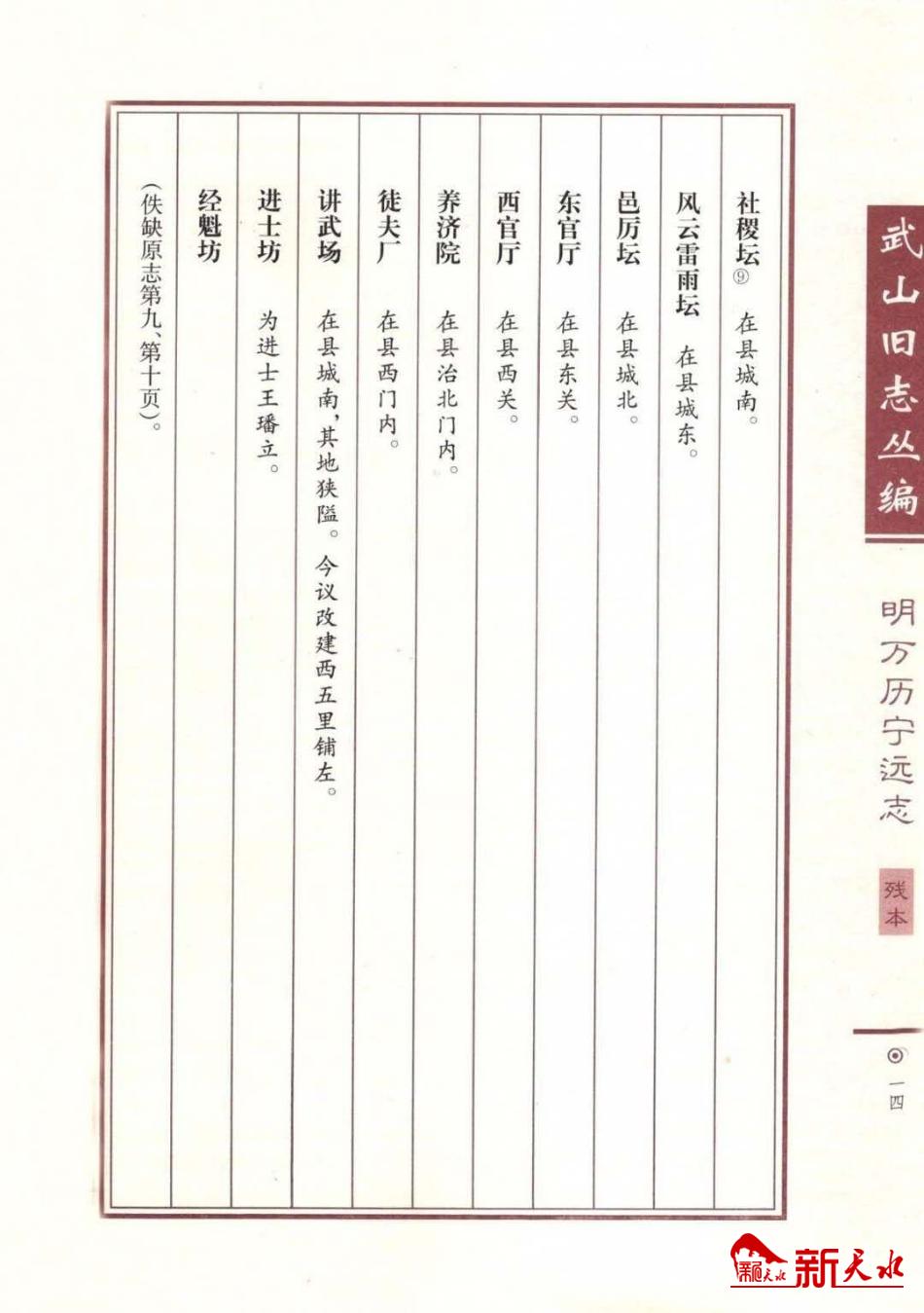 提及其查证过程,张耀德坦言,最初是出于好奇。“那时住在祭坛周边的人都说自己住在‘坛坪’上,但又不知‘坛坪’出处,于是我便查阅了古县志。现存最早的县志《明万历宁远志·文庙》残本中记载:‘风云雷雨坛,在县城东。’《清康熙宁远县志》上册残本亦记载:‘风云雷雨山川城隍坛,在县东。古代祭祀风、云、雷、雨之神,以保风调雨顺,与城隍合祭。’‘风云雷雨坛:在城东郊外,祭用春秋二仲上巳日。设三坛,风云雷雨居中,山川居左,城隍居右,陈设与社稷同。城隍庙与风云雷雨坛合祭。’就连《民国武山县志》也有记载,可见该坛是有来由的。”