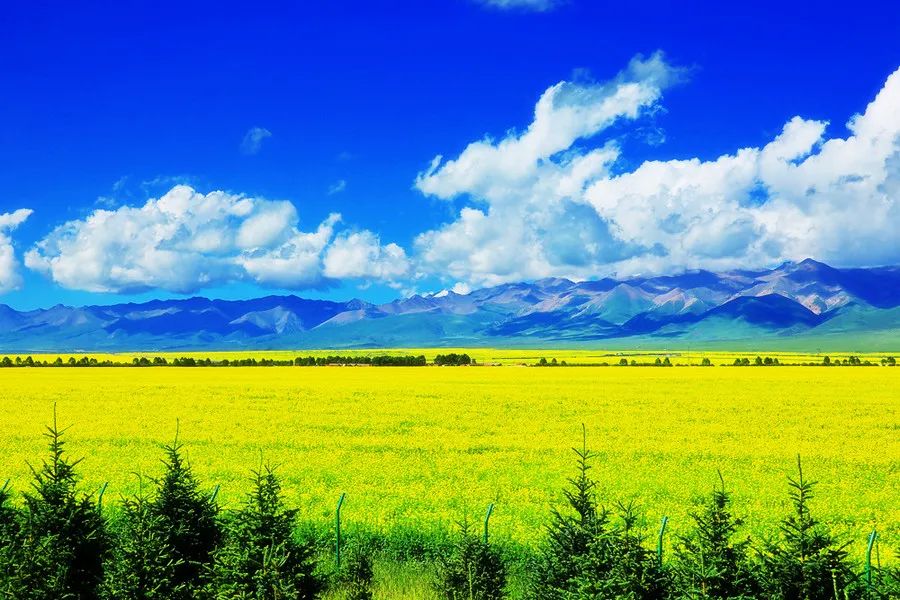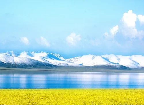 美丽富饶的青海湖,浩瀚缥缈,波澜壮阔。她虽没有西湖的妩媚,东湖的清丽,少有玄武湖的浆声,昆明湖的灯影,但青海湖的美是原始雄浑的,不是雕琢的自然之美,她是大自然赐予青藏高原的瑰丽珍宝。置身湖畔,你会为她的美怦然心动,看,那一片片金灿灿的油菜花随风摇曳,那种神秘色彩所笼罩的美丽大草原,还有那随处可见的牦牛饮水,羊群吃草,构成了“风吹草低见牛羊”的高原画卷。