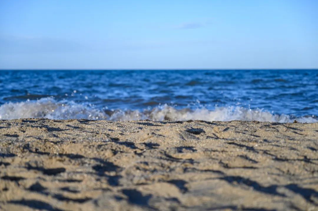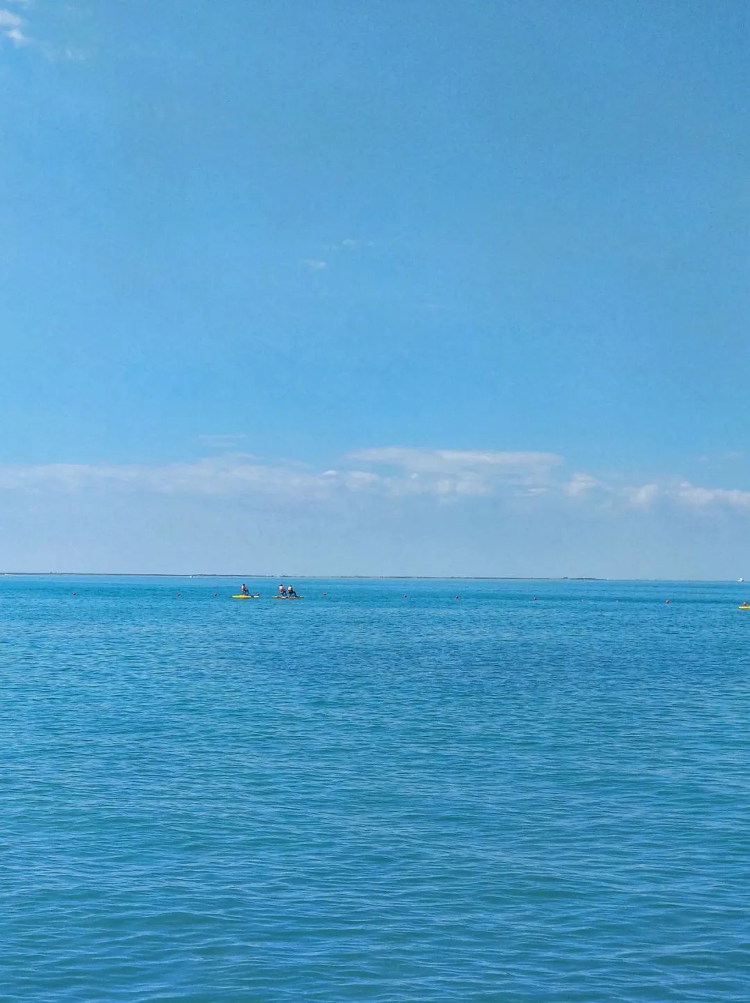 置身于一片辽阔碧蓝又平静的蓝色湖水边