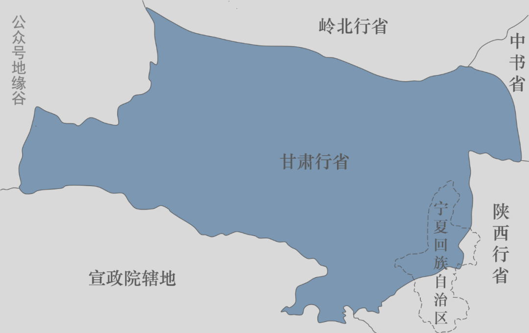 1666年也就是康熙五年,甘肃脱离陕西定为一省,设甘肃布政使司,行政中心设在兰州。近代以前的甘肃行省,包括如今的宁夏、青海东部和新疆北疆乌鲁木齐以东地区。也就是说,现今的宁夏、青海东部、新疆的大部或一部在行政区划上都属于甘肃行省所管辖。