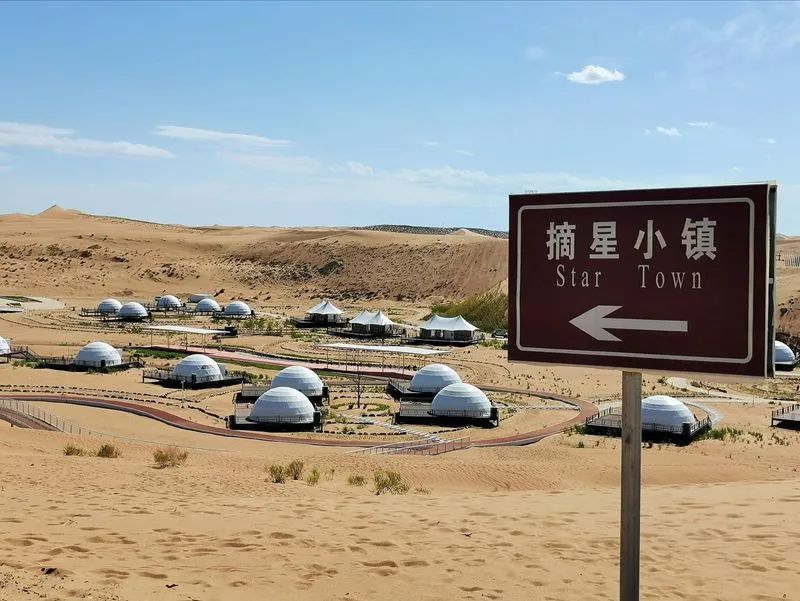 “摘星小镇”是民勤县利用优质沙漠和星空资源打造的全国首个沙漠天文科普特色小镇,是国内第一个驿站型沙漠旅游服务综合体。“栖身银河,手可摘星”,这个电影里的浪漫情节即将在民勤变成现实。“摘星小镇现在正在处于验收及整改阶段,预计在九月中旬投入运营。预计每天承载客量达到1000-2000人次左右。”项目负责人刘鸿霞介绍说。