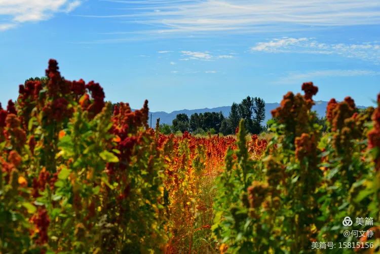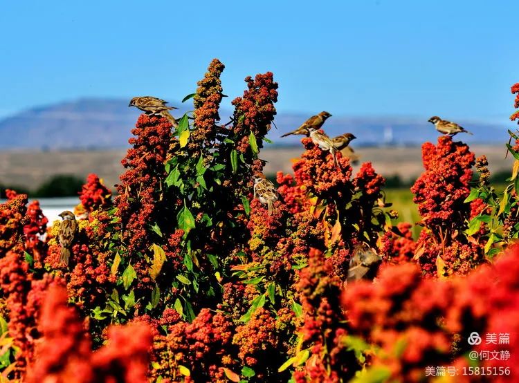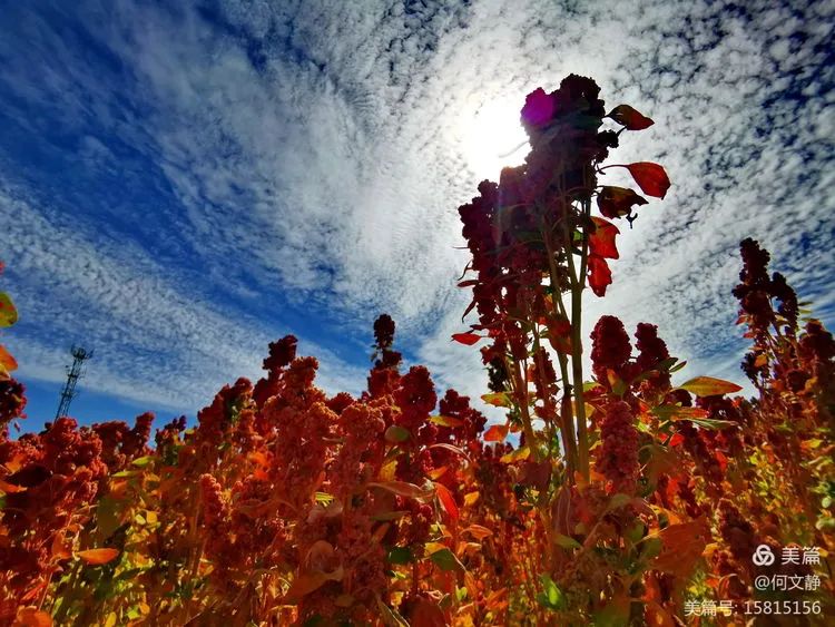 金秋九月,瓜果飘香,东寨藜麦已呈现出丰收的姿态,在蓝天白云的衬托下,长满果实的穗毫不犹豫地向外界展示它的美丽与富有,鸟雀也被吸引,在枝头不停雀跃。它的魅力引人心动,以心动带来行动,以行动带来美景,让我们共同欣赏!