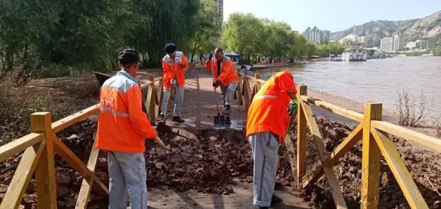 记者6日从兰州黄河风情线大景区管委会了解到,风情线大景区清淤活动已于 9 月 5 日全面开始,目前正着重清理公园与健身步道的淤泥。