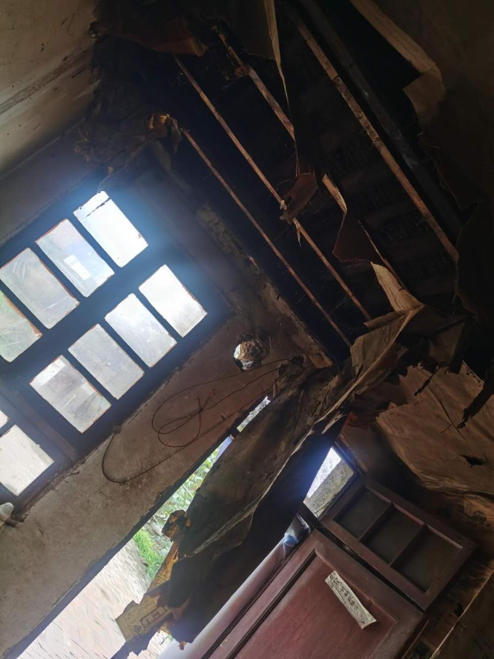 澎湃新闻(www.thepaper.cn)注意到,网友发布的张一悟故居现场图显示,室内屋顶漏水严重,已出现明显的损坏,而室外墙体也已出现裂痕、剥落。