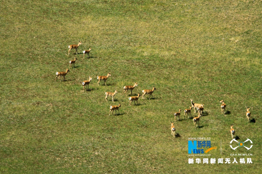 9月10日,甘肃省山丹马场牧草茂盛,成群的普氏原羚在草原上觅食、奔跑。普氏原羚又称黄羊,是国家一级保护动物,曾广泛分布于甘肃、青海、内蒙古、宁夏等省区。近年来,随着生态环境的改善,普氏原羚在山丹马场日渐增多。新华网发(陈礼 摄)