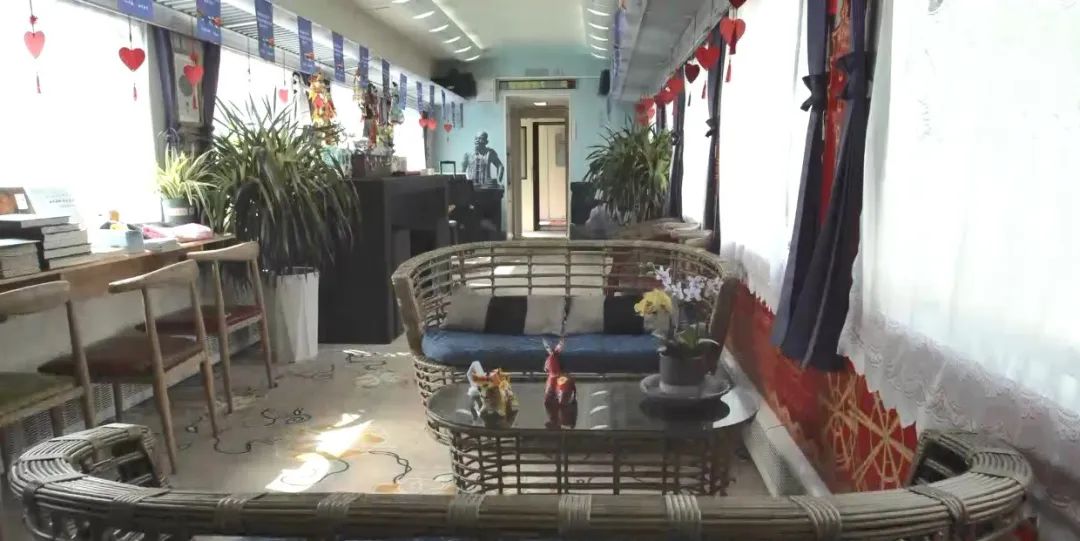 ——“一艘邮轮”: 大家已经习惯将“环西部火车游”比拟为“陆上邮轮”。火车游全列编组18辆,目前已开启固定编组、固定时间、固定线路常态化、图定化、大编组运行。她高端大气上档次,列车全部完成升级打造,列车内游客用品考究、环境优雅高端、干净敞亮舒适。在每一个细节打造上,都看得出火车游策划方用心良苦。她低调奢华有内涵,列车内演艺区非遗展示、嗨歌曼舞、棋牌茶歇一应俱全,消费区从文创产品到旅游纪念品、“甘味”特色农产品,还有难得一见的针灸体验,美不胜收、价廉物美。美食区自然不再是“方便面火腿肠”了,地地道道的兰州牛肉面、手抓羊肉,简直就是“美滴很聊咋咧”!