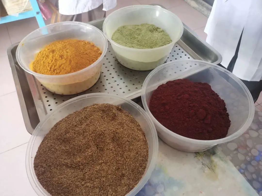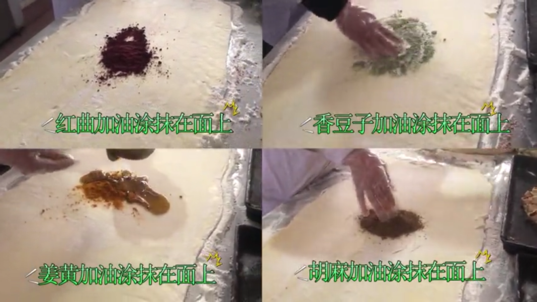 面粉、油、水、香豆子、红曲、姜黄、胡麻等。