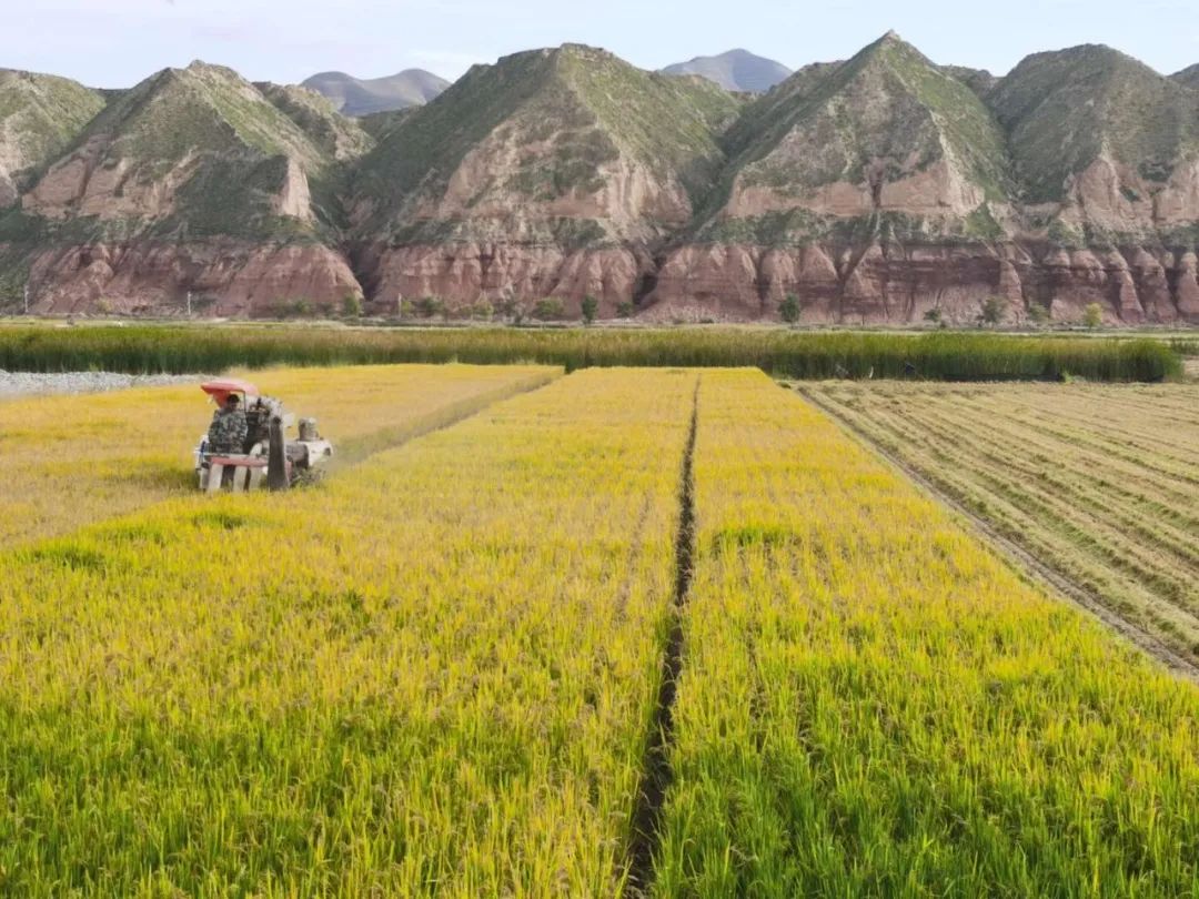 眼下,白银市靖远县的水稻陆续成熟,进入了全面收割期,田间地头呈现一派繁忙景象。随着大片金黄的水稻被卷进收割机,饱满的稻谷纷纷落入袋子,农民的脸上露出灿烂的笑容。