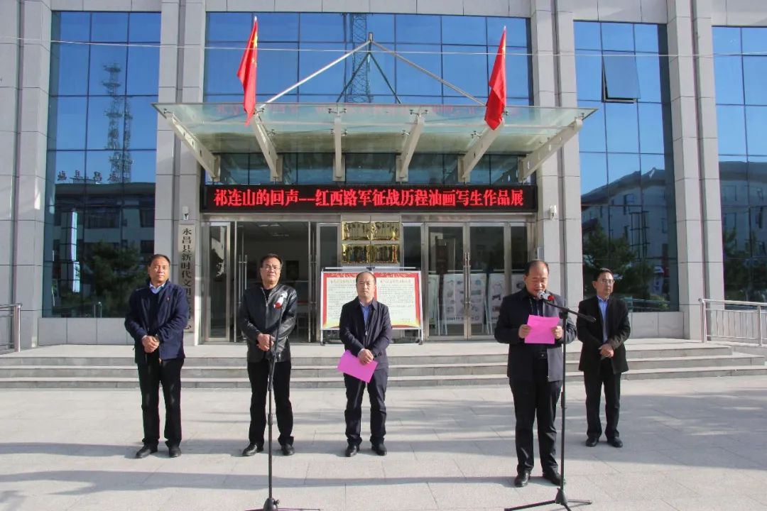 10月12日,在举国上下庆祝中华人民共和国成立71周年之际,由红西路军永昌战役纪念馆引进的“祁连山的回声”——寻访中国工农红军西路军征战历程油画写生作品展在永昌县文化馆开展。本次展览由中共永昌县委宣传部主办,红西路军永昌战役纪念馆、永昌县文体广电和旅游局承办,永昌县文化馆协办,展期20天。