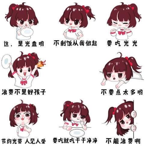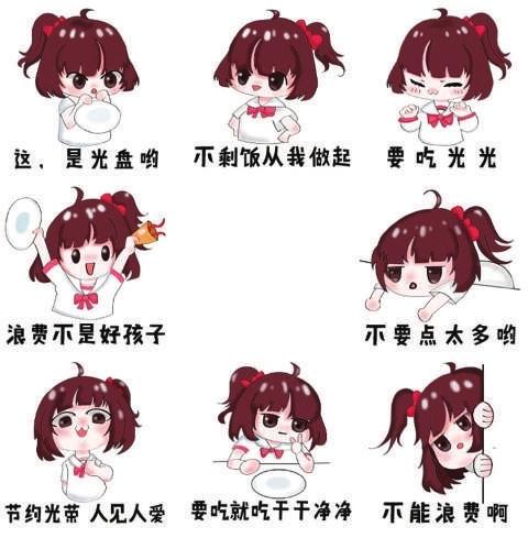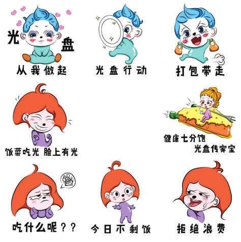 这4套“光盘”行动表情包分别是《彭小兜的“光盘”计划》、《节约在校园》、《我“光盘”我“光荣”》、《小唐卖萌篇》。“我们设计的表情包简单明了,小朋友、老年人看一眼就能明白,传播‘光盘’理念很实用。”海妙说。