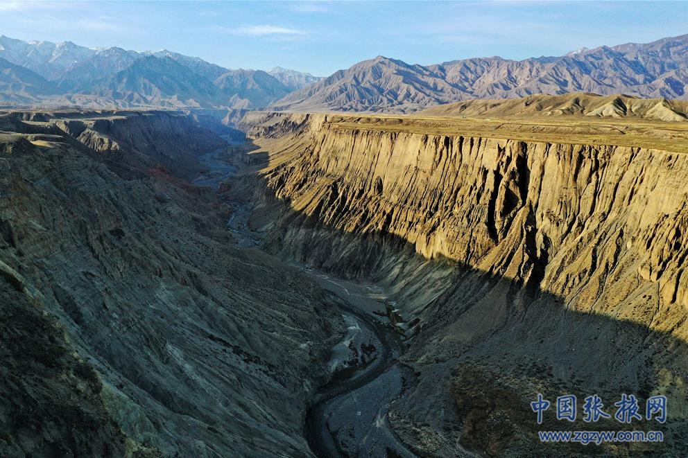 2020年11月1日,深秋时节的甘肃省张掖市高台县新坝镇红沙河村马营河大峡谷,在晨光的映照下溪水潺潺、峡谷幽深、陡峭突兀的深沟险坡显的气势恢宏,雄伟壮观。马营河大峡谷位于河西走廊张掖市高台县西南端,祁连山北麓的新坝镇与酒泉市交界的红沙河村,峡谷发源于祁连山脉,属黑河支流,海拔高2850-3150米,长度约20公里,深度超过300米,最宽处达1000米,最狭处不足30米。(特约摄影师 郑耀德/摄)