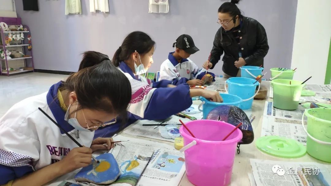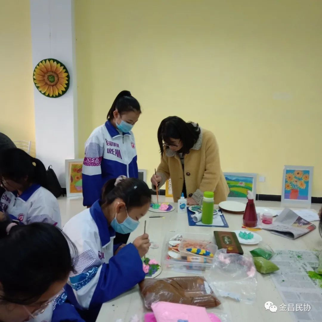 金昌市民协在市文联指导下,从2018年开始,在公司六中,市第三中学深入开展“民间文艺进校园”活动。几年来,金昌市民间文艺家协会致力打造“民艺大讲堂”品牌,在市第三中打造建立“金昌民间传统文化展厅”和“手绘,面塑,剪纸,泥塑四个培训工作室”。目前已经在中小学举办56场民间艺术讲座和演示活动,内容涵盖剪纸、书画、壁画、手绘、泥塑、面塑等多个艺术门类。