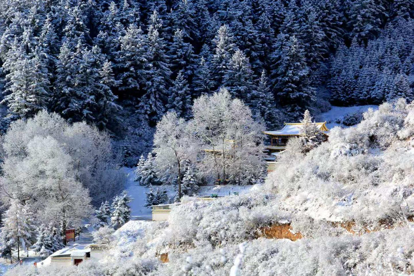 11月20至21日,一场冬雪把肃南县马蹄寺景区装扮的银装素裹、分外妖娆,山峰、森林、石窟丹霞与白雪交相辉映,美仑美奂,美艳撩人,宛如童话的世界。张新荣 摄影
