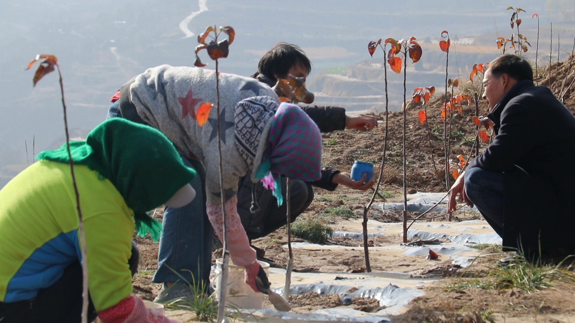 福建省福清市客商林朝龙:“我们通过东西部扶贫协作,在这边招商引资过来,通渭县上店村这边,我们经过专家的论证,这里的气候各种条件适合种苹果,上店村这边流转了200多亩地,这200多亩地里面牵扯到贫困户和贫困务工人员大概有30多户。”